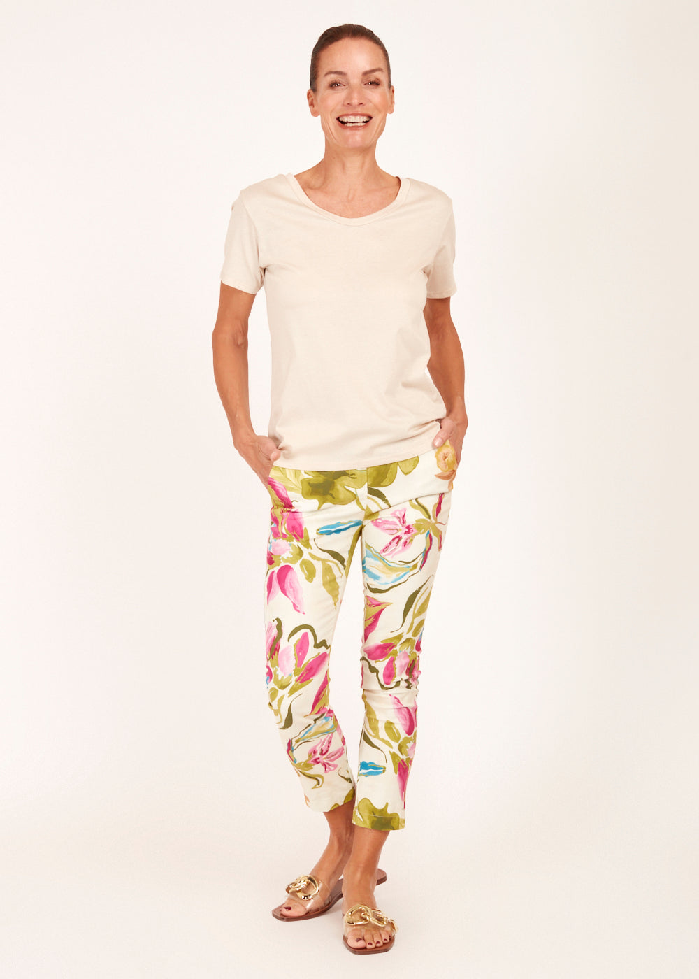 Bringe Farbe in deine Garderobe mit unserer schmal geschnittenen Hose mit auffälligem Print in lebendigem Fuchsia! Diese Hose ist nicht nur ein modisches Statement, sondern auch ein bequemes Must-have für deinen Kleiderschrank.
