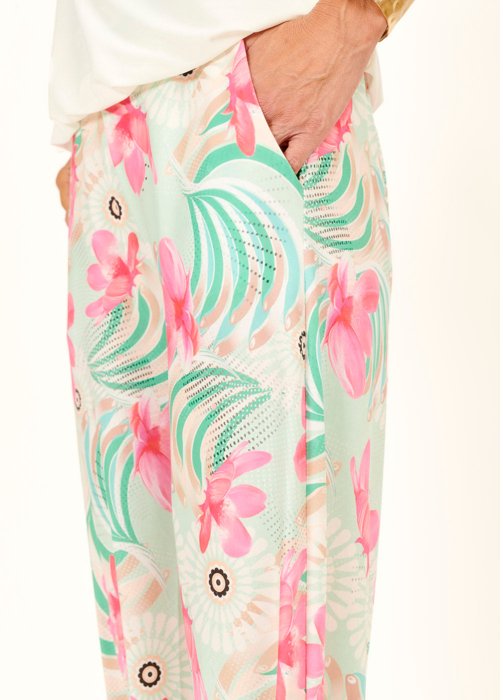 Unsere Druckhose in Pink verleiht deinem Outfit das gewisse Etwas und sorgt für einen farbenfrohen Auftritt.