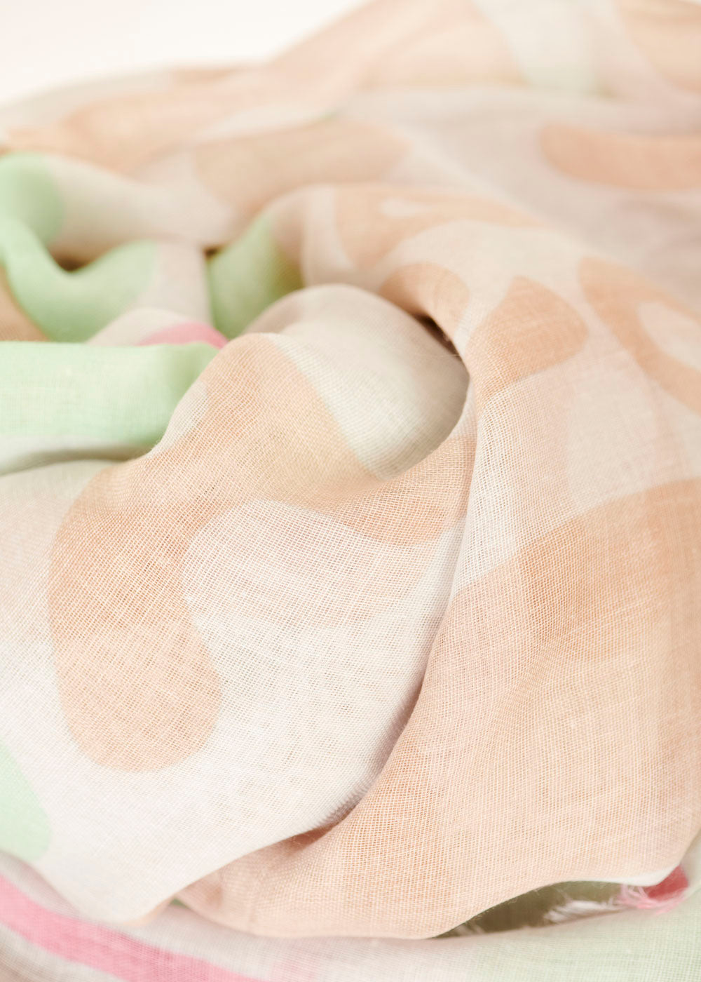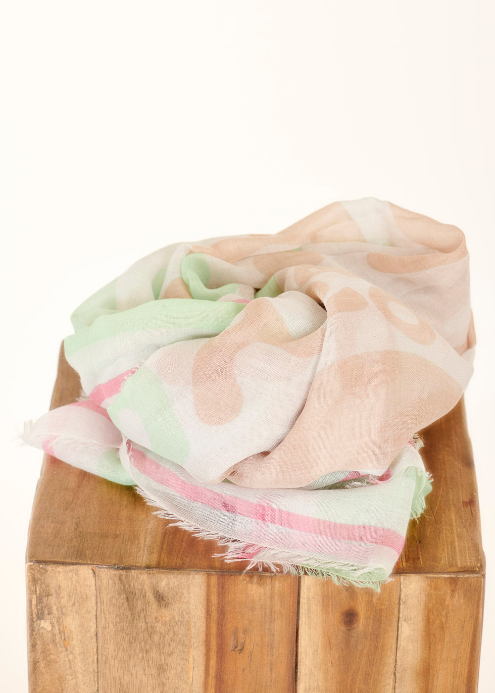 In einem harmonischen Zusammenspiel aus Pink, Grün und Beige verkörpert dieser Schal die Lebendigkeit des Moments. Jeder Farbton erzählt eine Geschichte, vermittelt eine Emotion und fängt die Essenz des Lebens ein.