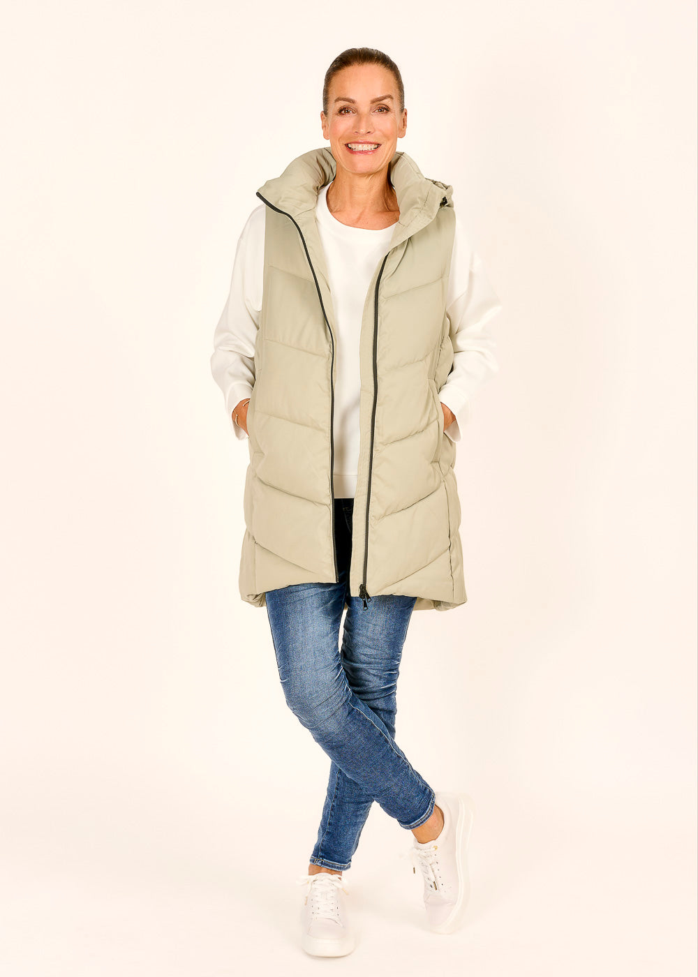 Mit der Longweste in Verde bringst du frischen Wind in deine Garderobe. Sie lässt sich vielseitig kombinieren und verleiht jedem Outfit einen stylischen Touch!