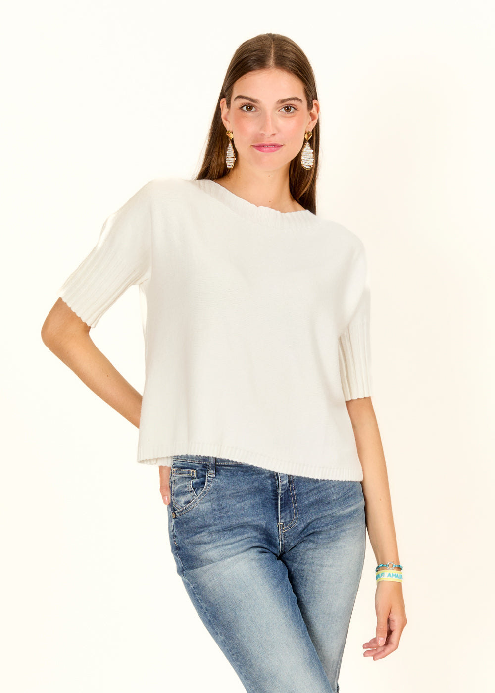 Unser weißer Halbarm-Pulli ist Dein idealer Begleiter für jede Gelegenheit. Fühle Dich rundum wohl und genieße den klassisch-eleganten Look!