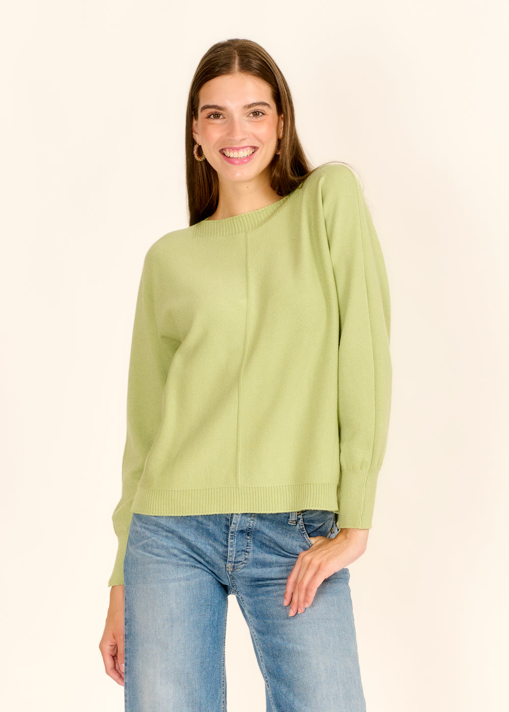Kuscheliger Pullover mit Trend-Farbe und geradem Schnitt. Die wundervolle, angestrickte Naht vorne ist ein echtes Design-Highlight.