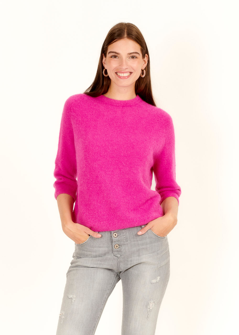 Hol dir den modischen Pulli in frischem fuxia aus kuschelig weichem Babyalpaka und erlebe höchsten Tragekomfort mit einem Hauch von Luxus. Perfekt für einen stylischen Auftritt an kühlen Tagen!