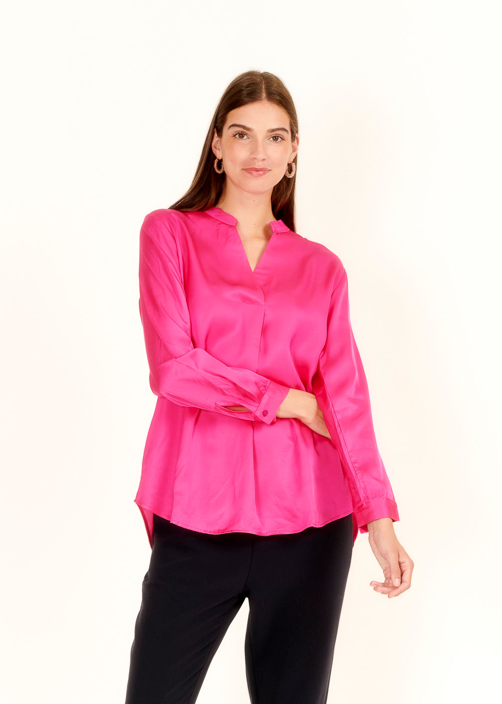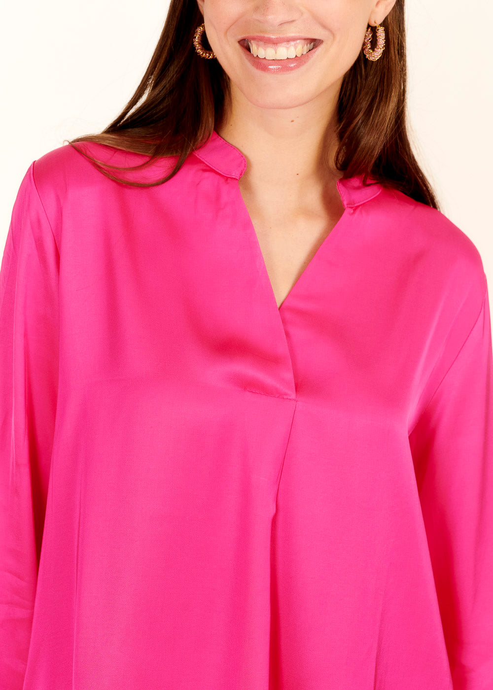 Entdecke die leuchtende Tunikabluse in Fuchsia, die Deine Garderobe mit einem Hauch von Farbe und Eleganz bereichert. Perfekt für jeden Anlass, verleiht sie Dir einen stilvollen und femininen Look.