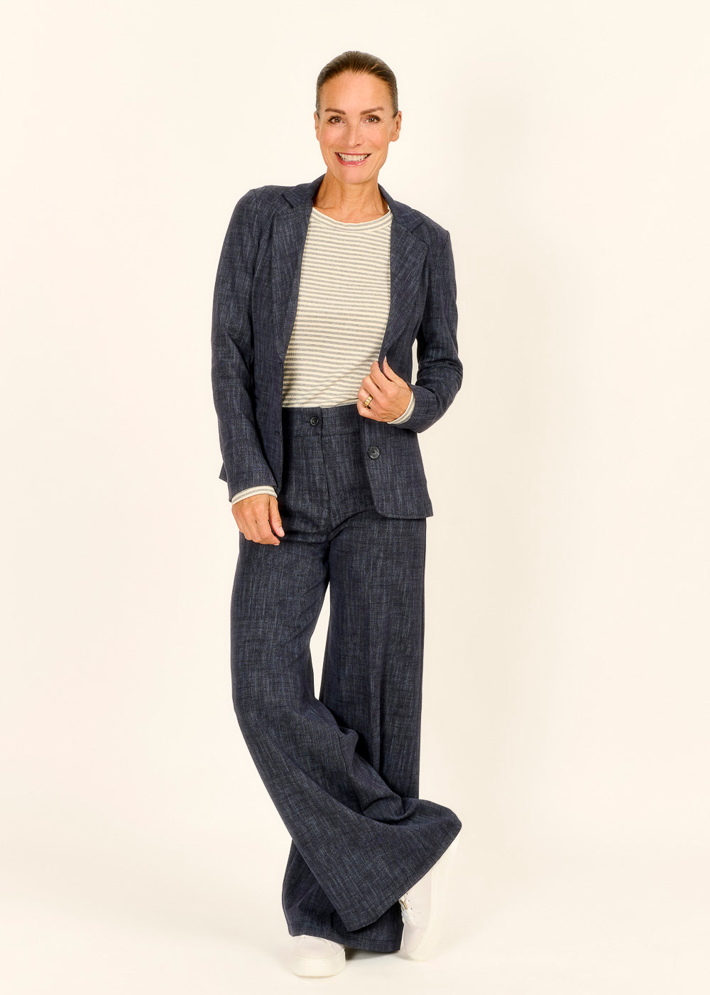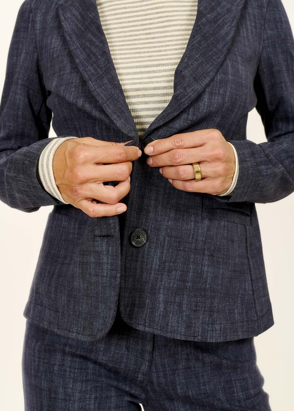 Dieser Blazer in stilvoller Jeansoptik verleiht deinem Outfit das gewisse Etwas und passt perfekt zu jedem Anlass. Kombiniere ihn lässig oder elegant – du entscheidest!