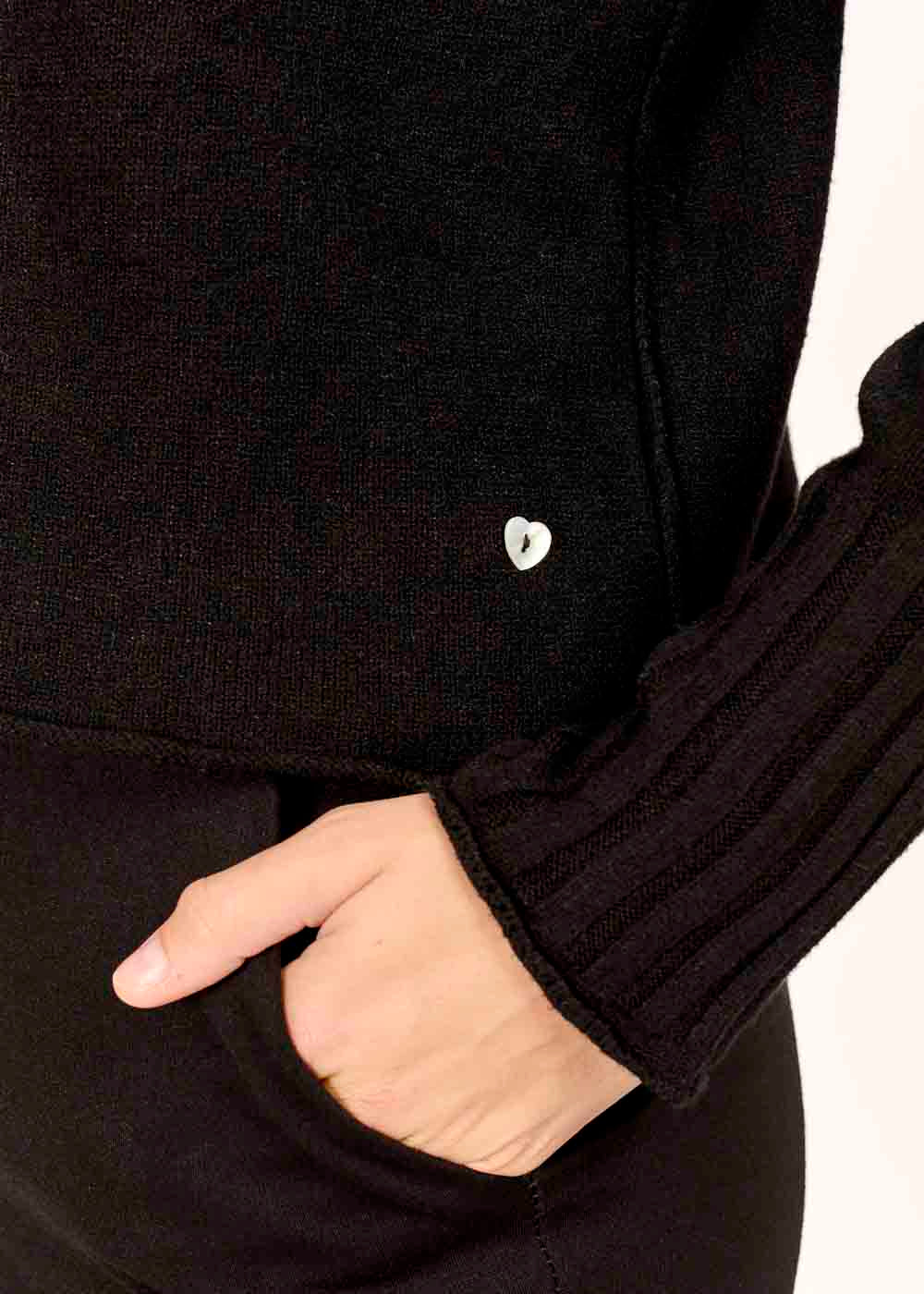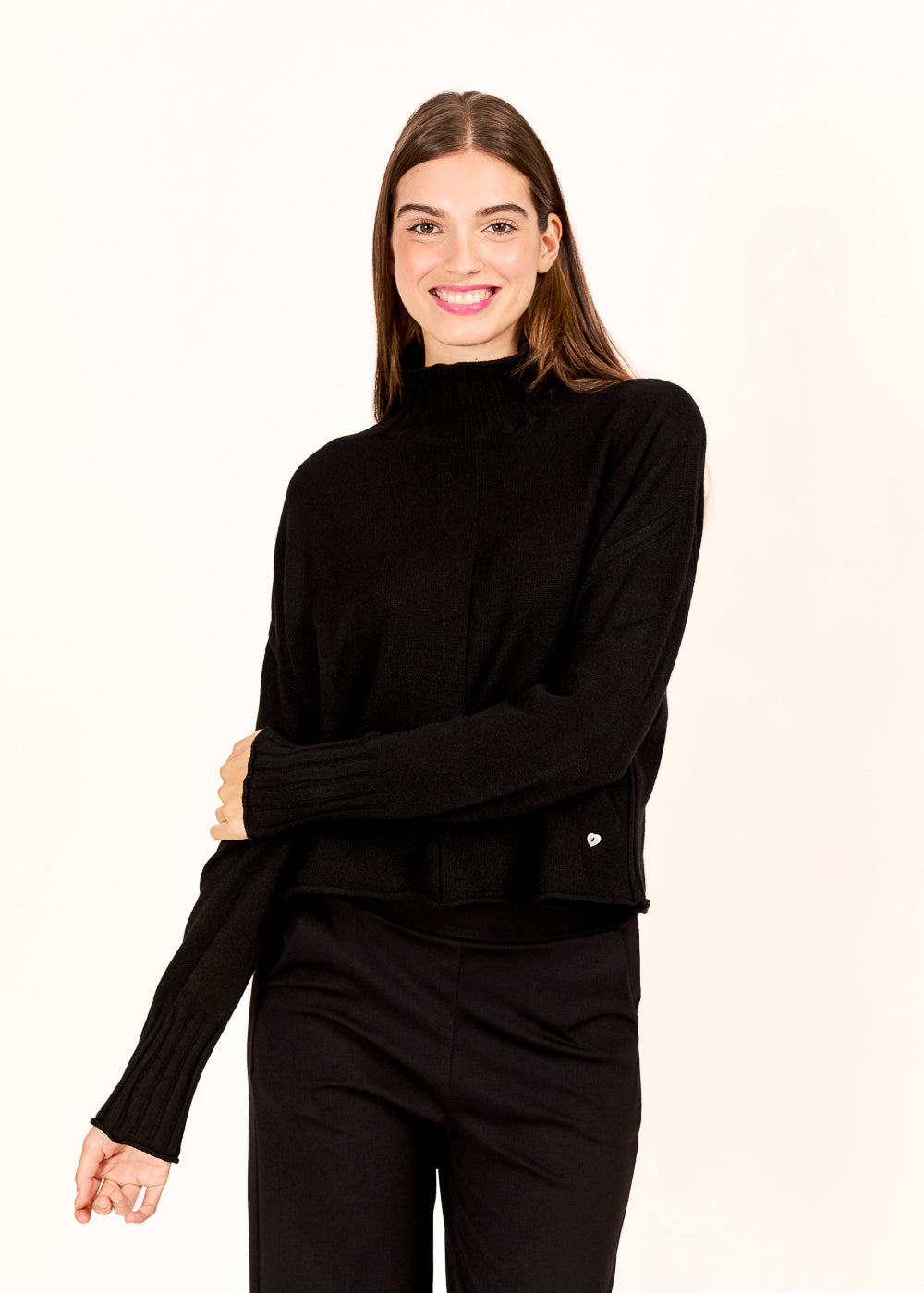 Dieser schwarze Stehkragenpullover bietet Dir einen zeitlosen Look und hält Dich dabei warm und gemütlich. Perfekt für jeden Anlass – kombiniere ihn lässig oder elegant ganz nach Deinem Stil!