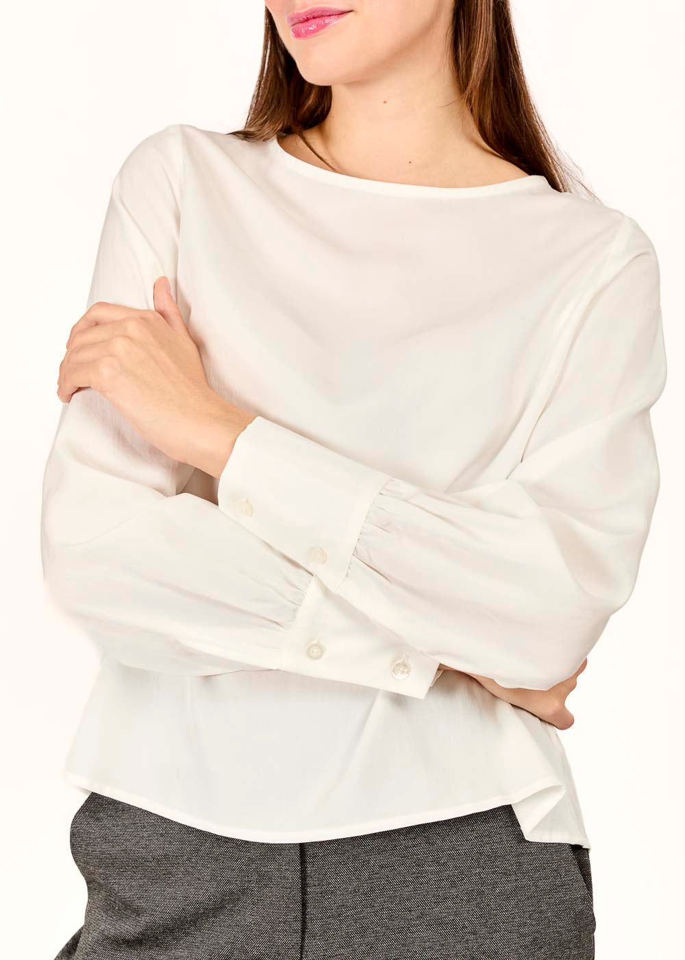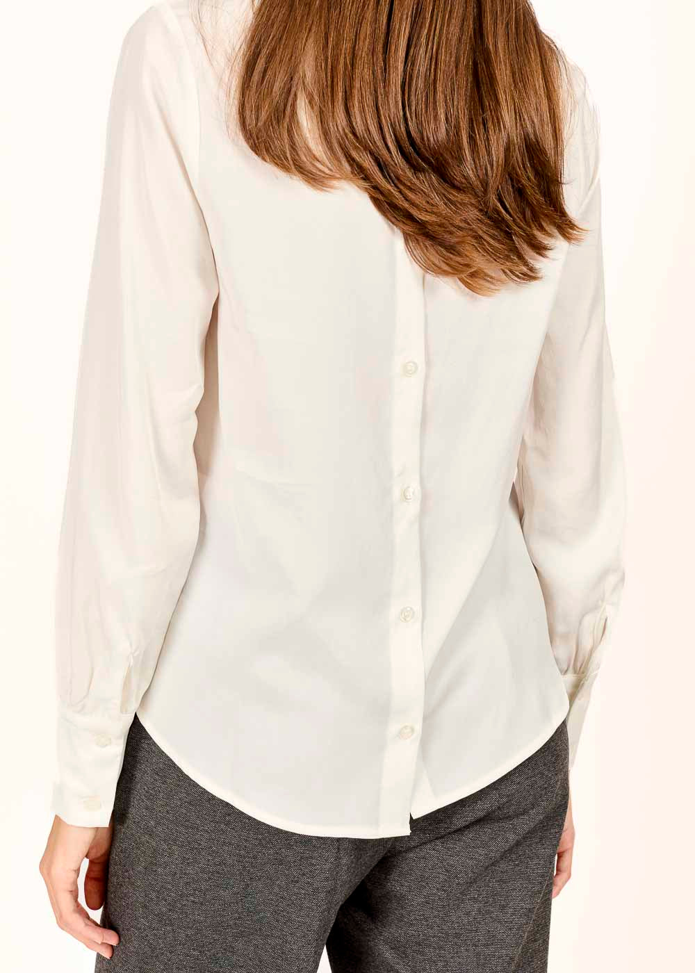 Diese weiße Bluse mit Knöpfen auf der Rückseite verleiht deinem Look eine elegante und zugleich moderne Note. Perfekt für besondere Anlässe oder stilvolle Alltagskombinationen!