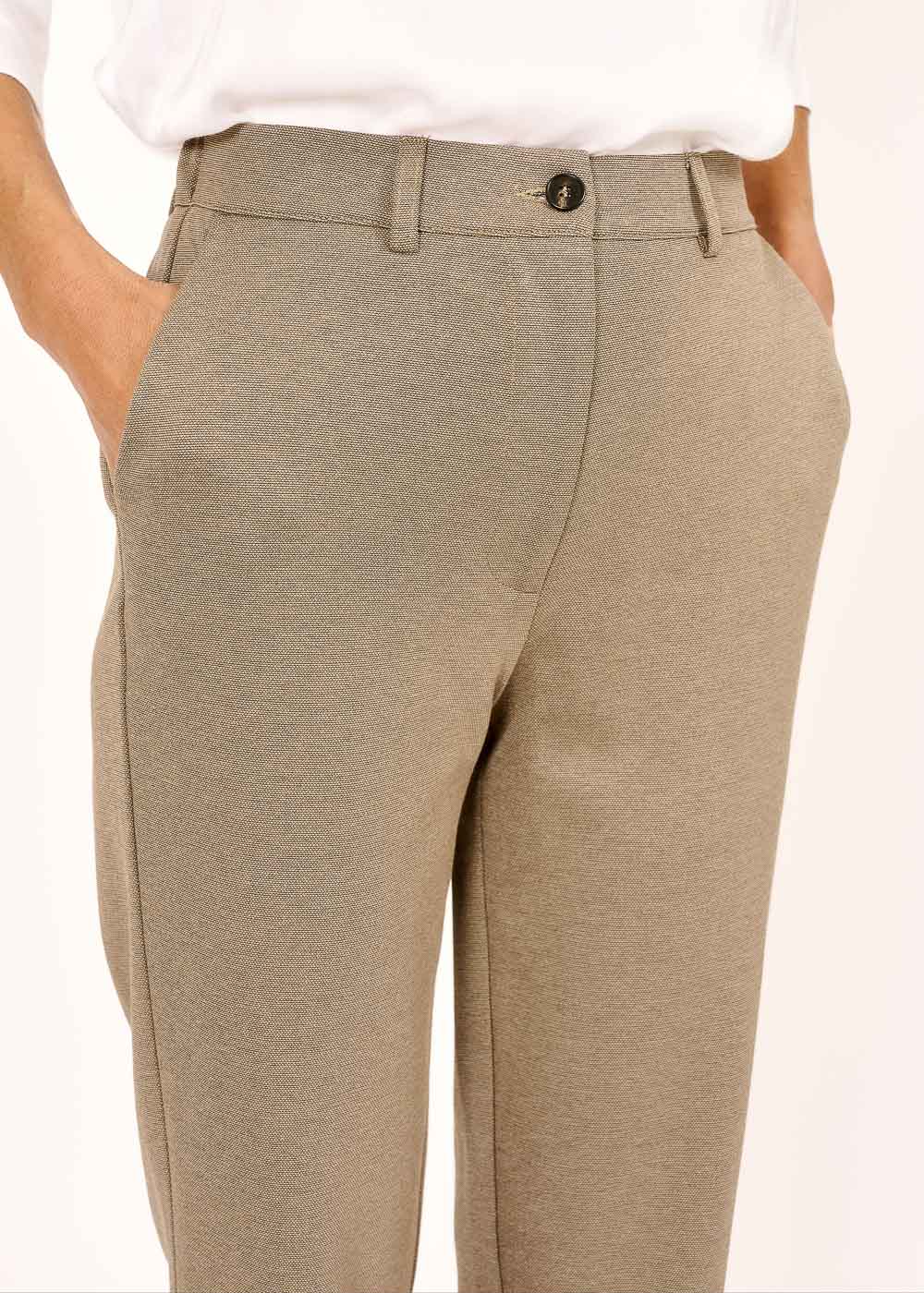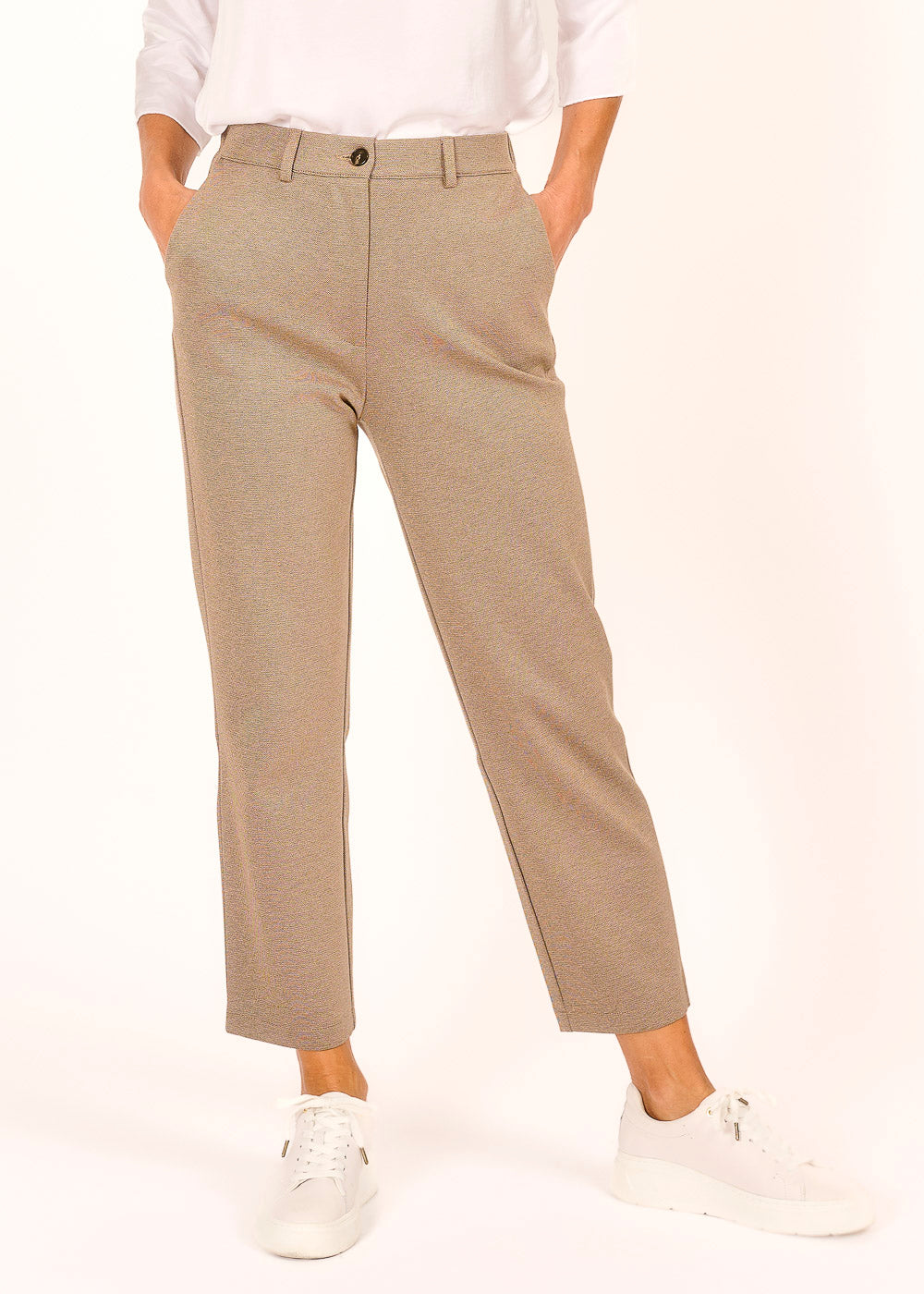 Entdecke die schmale Hose in Caramello, die deinem Look eine elegante Note verleiht! Ihr figurschmeichelnder Schnitt und das warme Farbspiel machen sie zum perfekten Begleiter für jede Gelegenheit.