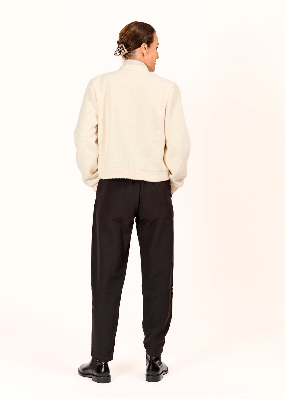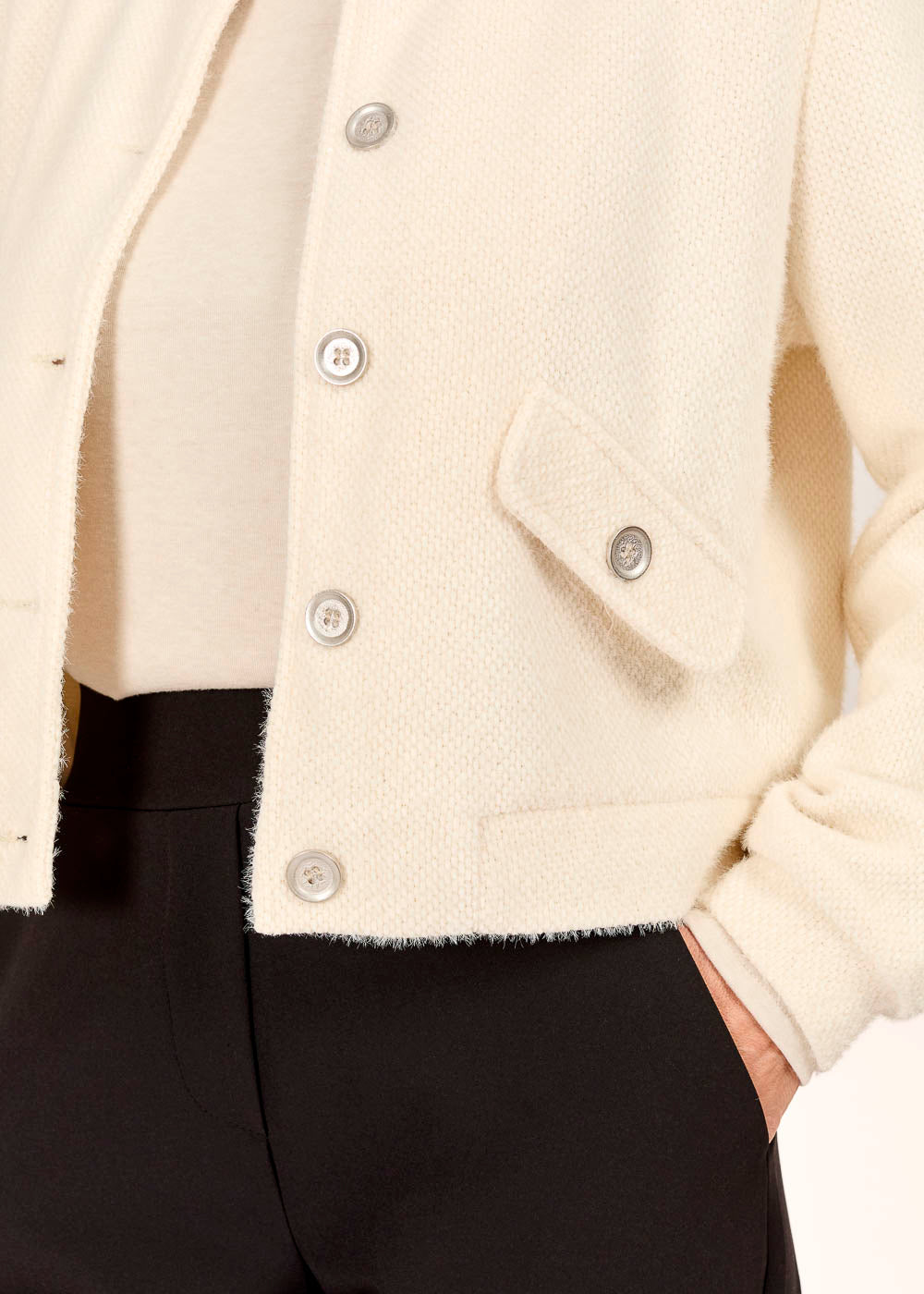 Der Strick-Bomberino in Panna ist dein neuer Lieblingsbegleiter für kühlere Tage: weich, stylisch und vielseitig kombinierbar. Mit seinem zeitlosen Design bringt er Gemütlichkeit und Eleganz in jeden Look!