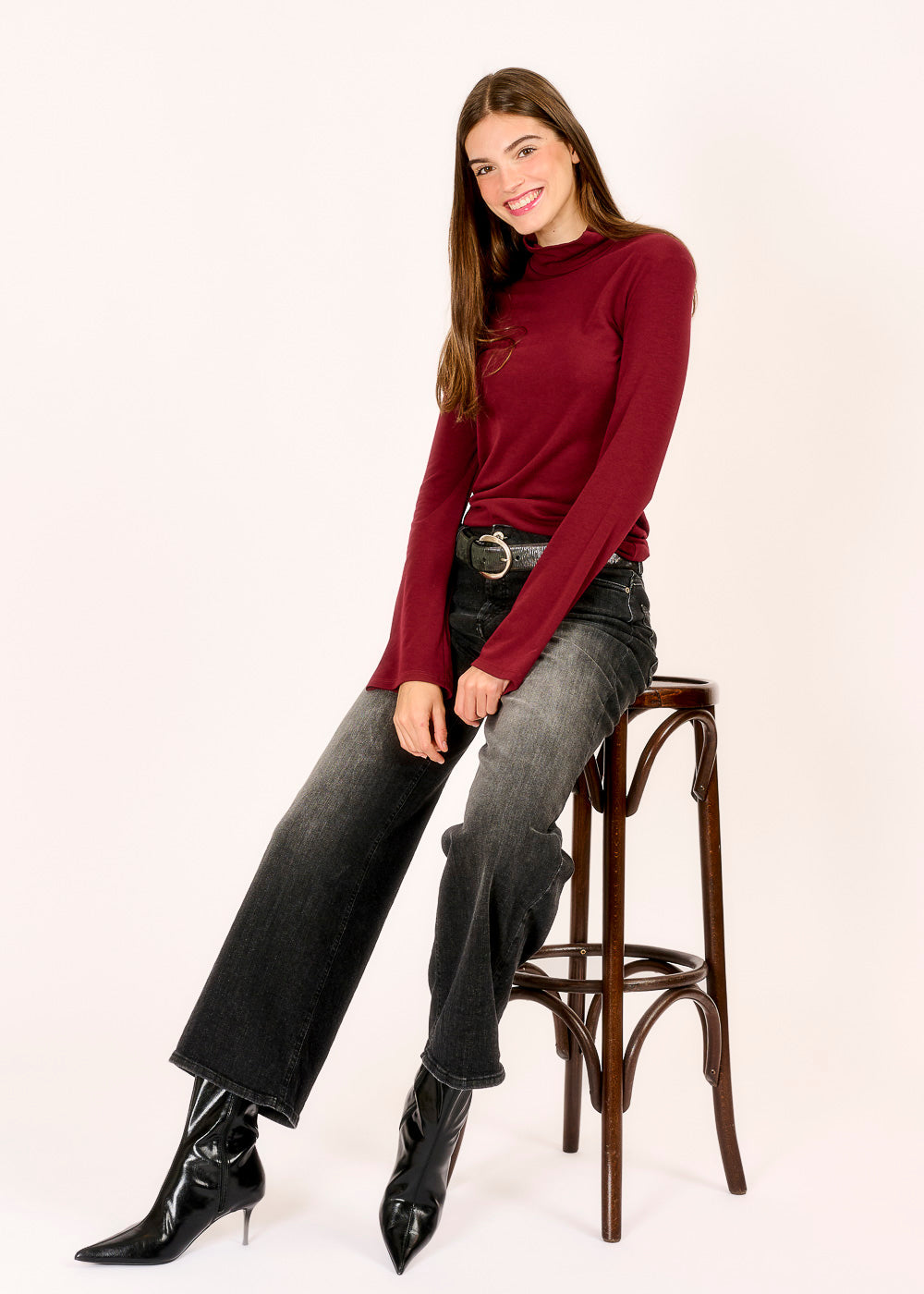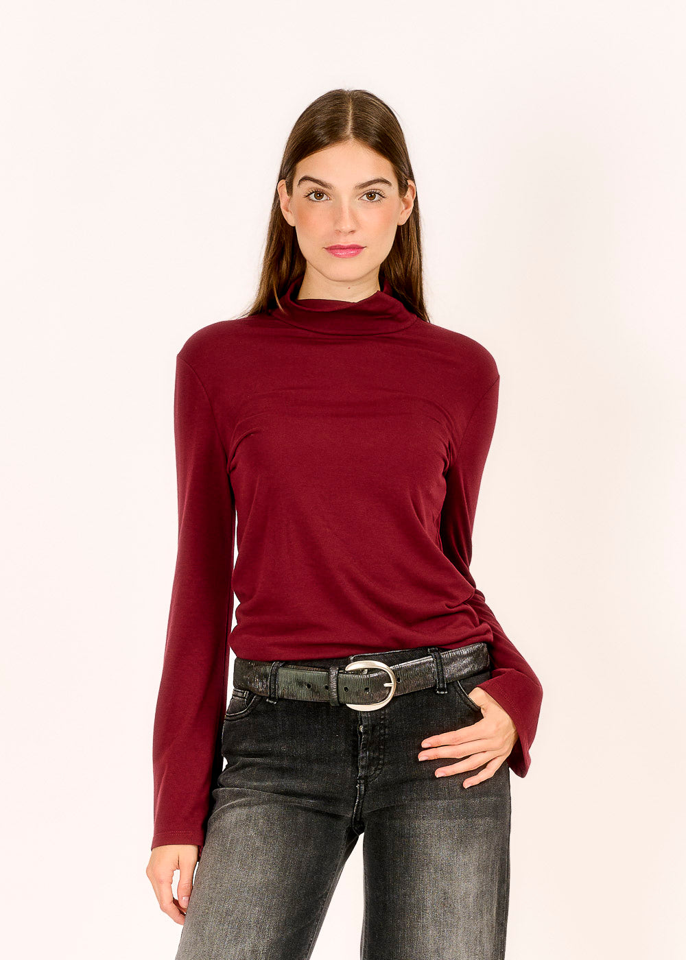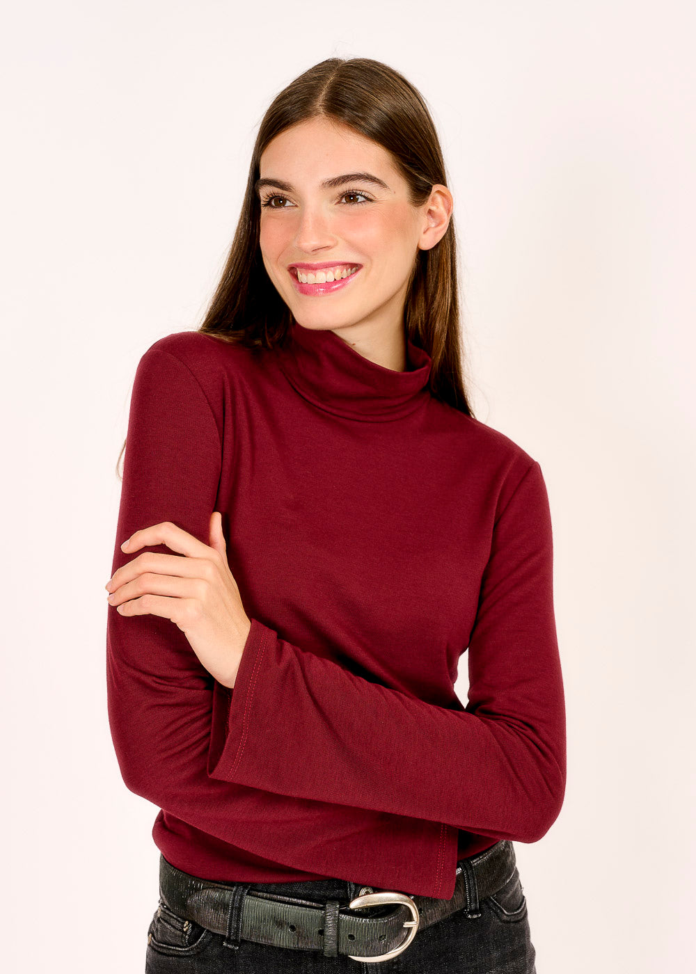 Dieser Rollkragenpullover in einem eleganten Vino-Ton ist der perfekte Begleiter für kühle Tage. Mit seinem weichen Material und dem modernen Schnitt hält er dich warm und sieht dabei einfach stylisch aus!