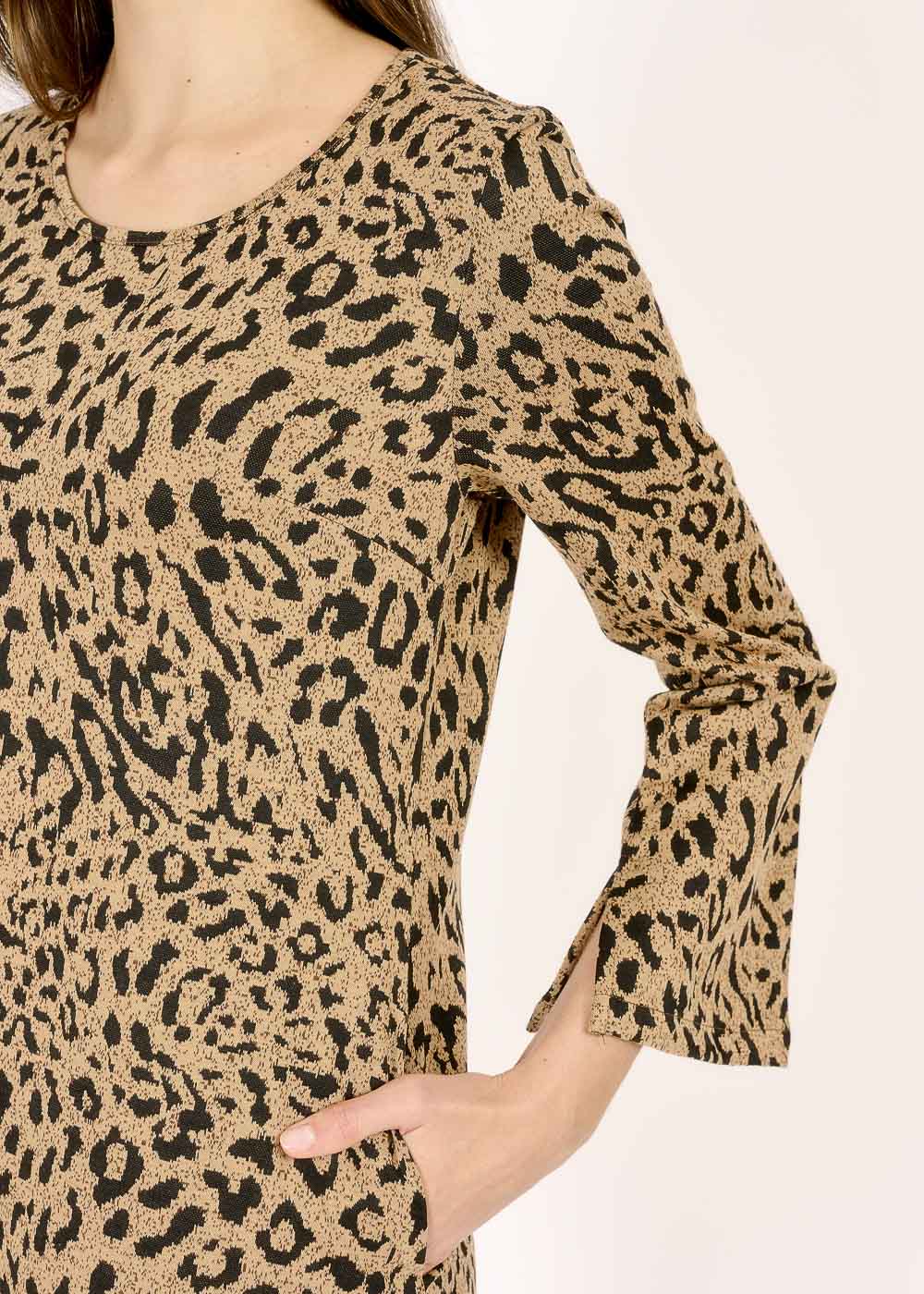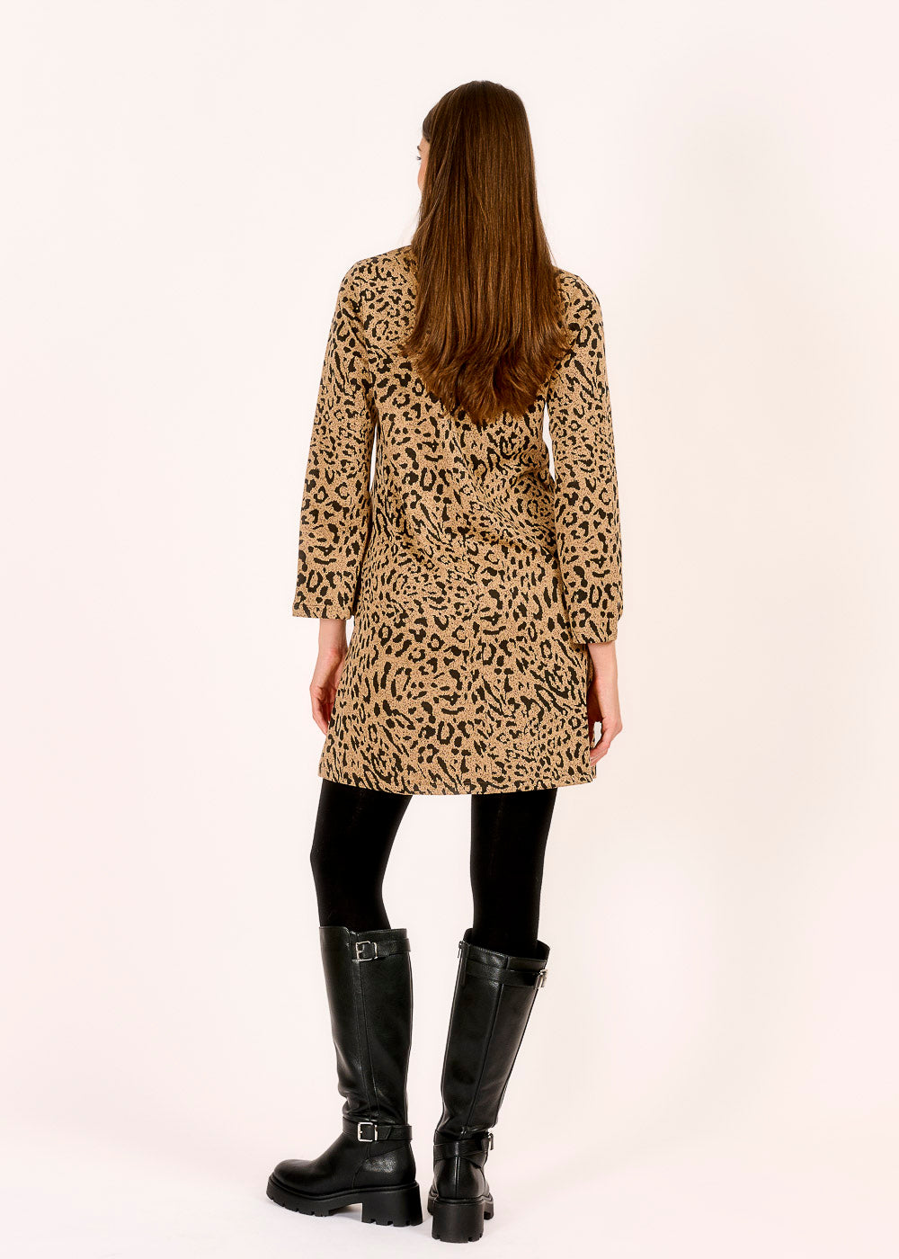 Entdecke das elegante Animalkleid in der warmen Farbe Cappuccino – perfekt für einen stilvollen Auftritt mit einem Hauch von Wildheit. Fühl dich rundum wohl in diesem aufregenden Design, das Komfort und Trend vereint!