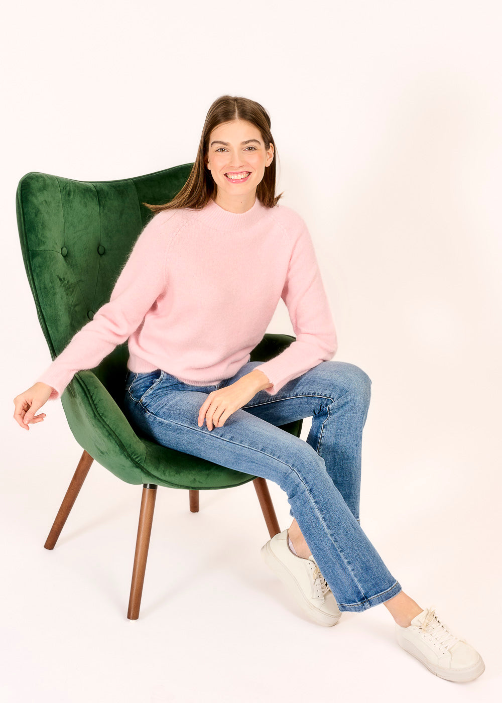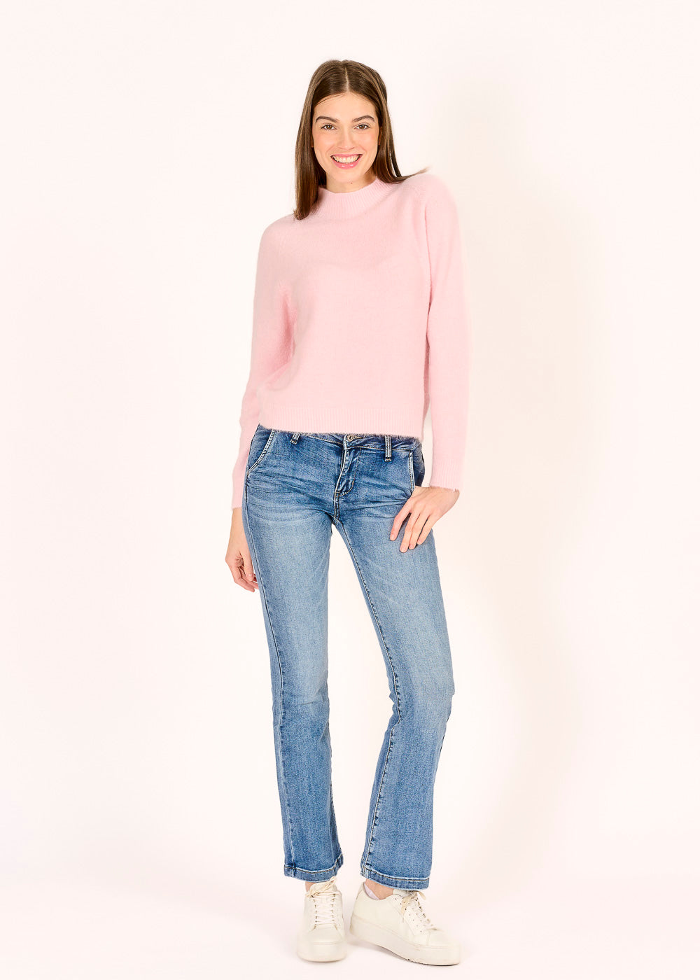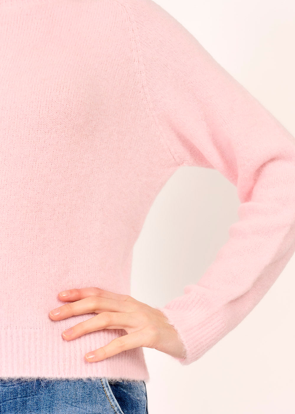 Dieser stilvolle Stehkragenpullover in zartem Rosa überzeugt mit seinem kurzen Schnitt und lässt sich perfekt zu hohen Hosen oder Röcken kombinieren. Der weiche Stoff sorgt für ein angenehmes Tragegefühl und verleiht deinem Outfit einen modernen Touch.