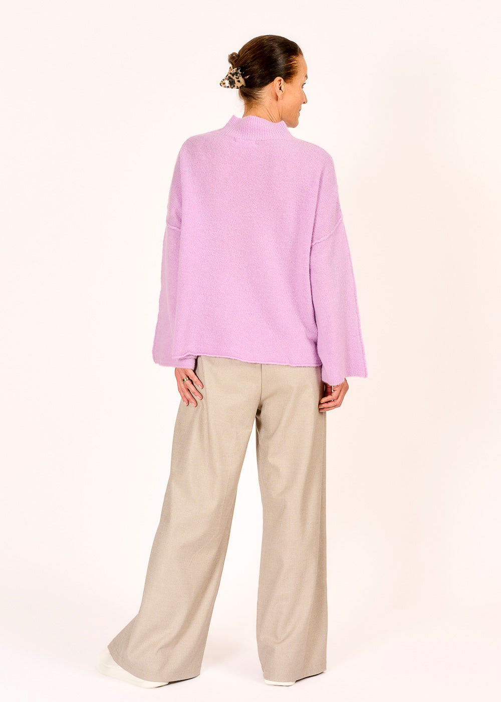 Entdecke den charmanten Stehkragenpullover in der zauberhaften Farbe Lavanda – ein echter Hingucker, der Eleganz und Gemütlichkeit perfekt verbindet. Ob für entspannte Stunden oder stilvolle Auftritte, dieser Pullover wird dein neues Lieblingsstück!