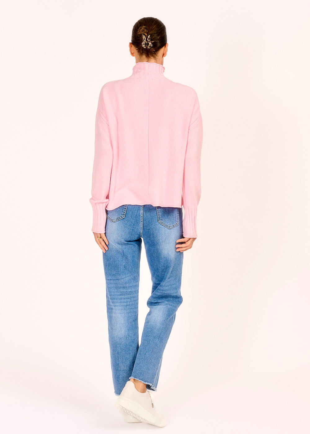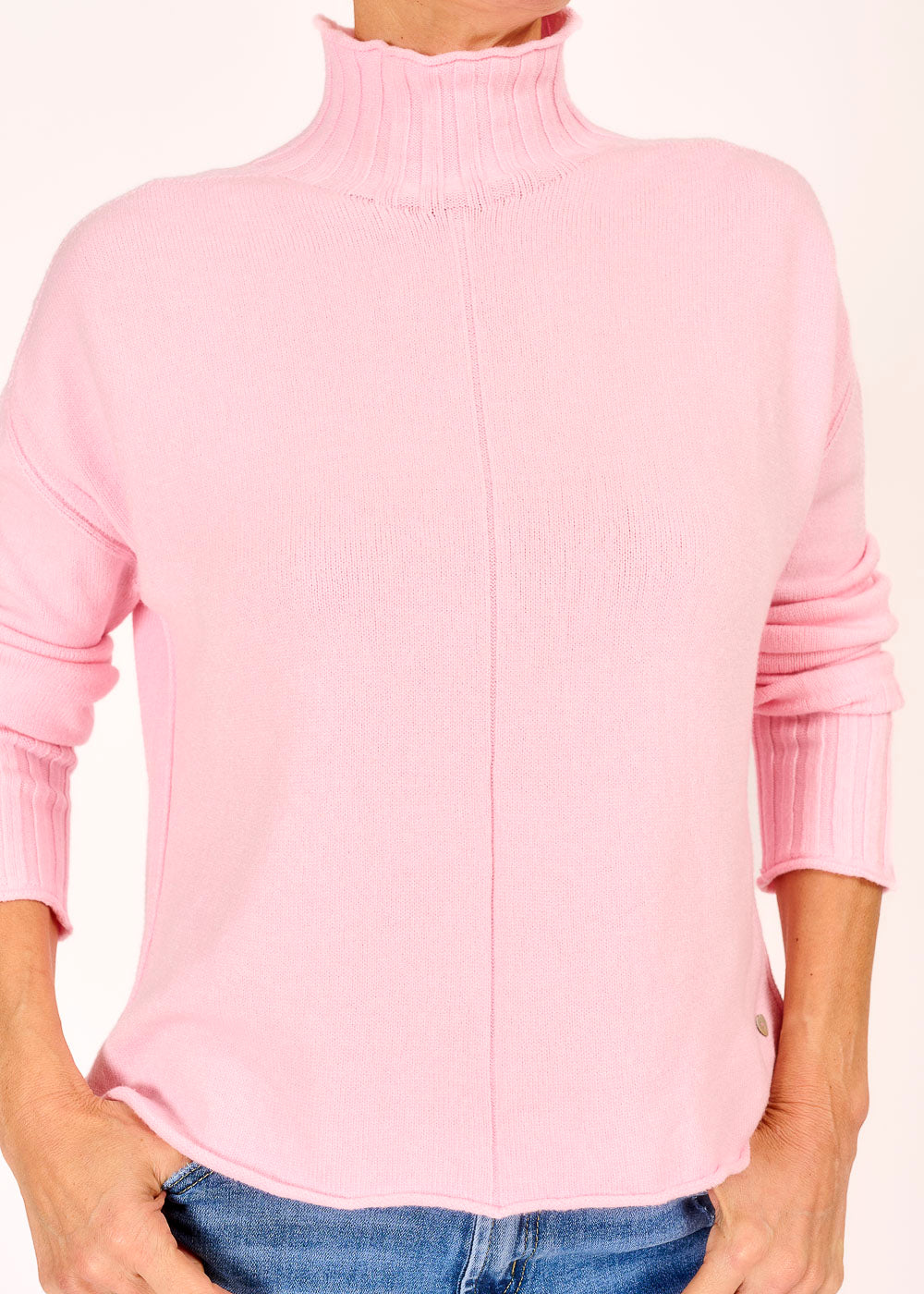 Dieser Stehkragenpullover in zartem Rosa ist dein perfekter Begleiter für gemütliche und stilvolle Tage. Kuschelweich und vielseitig kombinierbar – genau das, was deine Garderobe braucht!