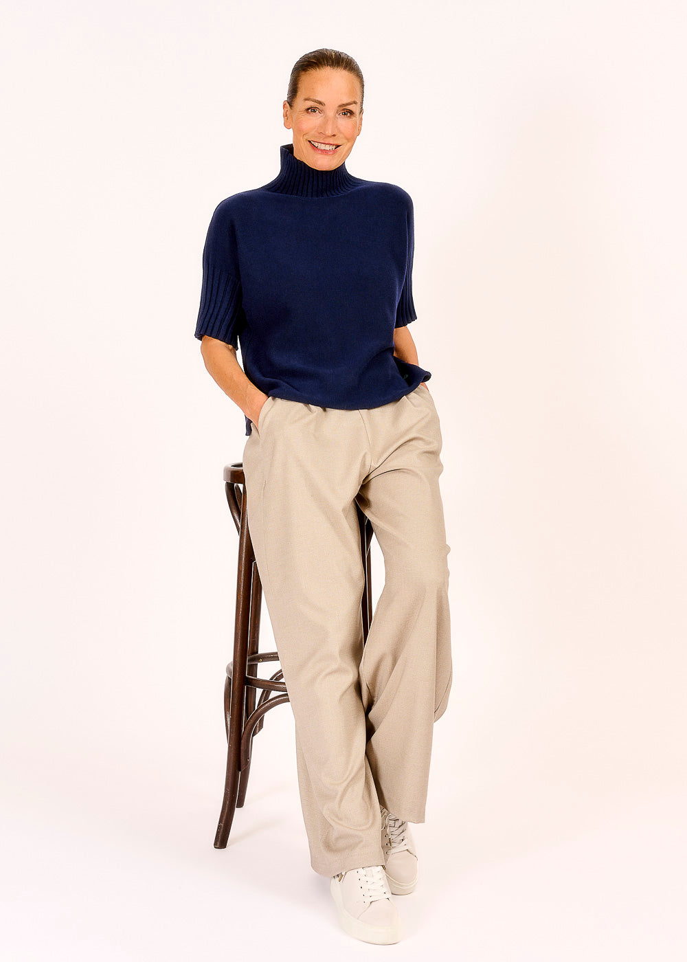 Unser kuschelige lässige Pullover mit Turtleneck bietet das Beste aus beiden Welten - unschlagbare Gemütlichkeit und unverwechselbaren Stil. Das angenehme Material ist weich auf deiner Haut und der edle dunkelblaue Ton lässt sich wunderbar stylen. Egal, ob du im Büro, bei einem Treffen mit Freunden oder an einem gemütlichen Abend zu Hause tragen - dieser Pullover ist immer die richtige Wahl.