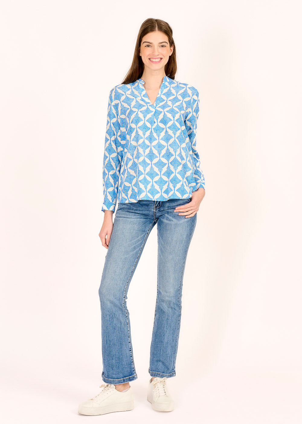Diese bedruckte Tunika in Jeansblau begeistert mit einem frischen, modernen Druck und einem lockeren Schnitt, der für eine entspannte Passform sorgt. Die hochwertige Viskosequalität fühlt sich weich und angenehm auf der Haut an. Ideal für den Alltag, lässt sich diese Tunika vielseitig mit Jeans oder Leggings kombinieren.