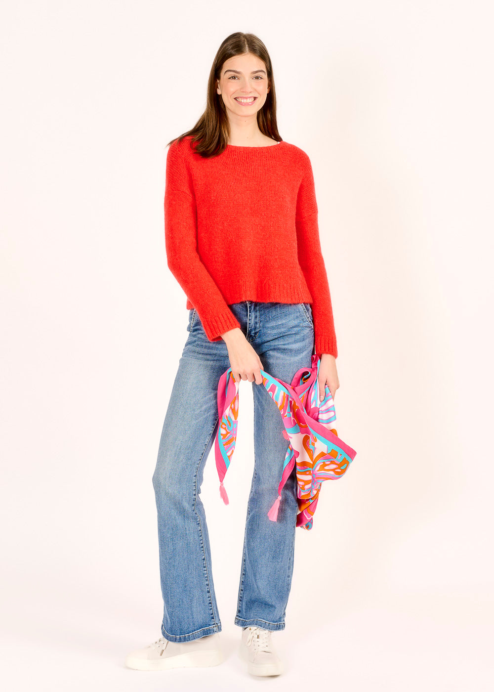Bringen Sie ein bisschen Farbe in Ihre Garderobe mit unserem Strickpullover in einem lebendigen Korallton – ein echter Hingucker für jede Jahreszeit! Die weiche Strickqualität sorgt für ein angenehmes Tragegefühl, während die kräftige Farbe Ihrem Outfit einen fröhlichen, modernen Akzent verleiht. Perfekt kombinierbar mit hellen Jeans oder neutralen Tönen, zaubert dieser Pullover gute Laune in Ihren Alltag.