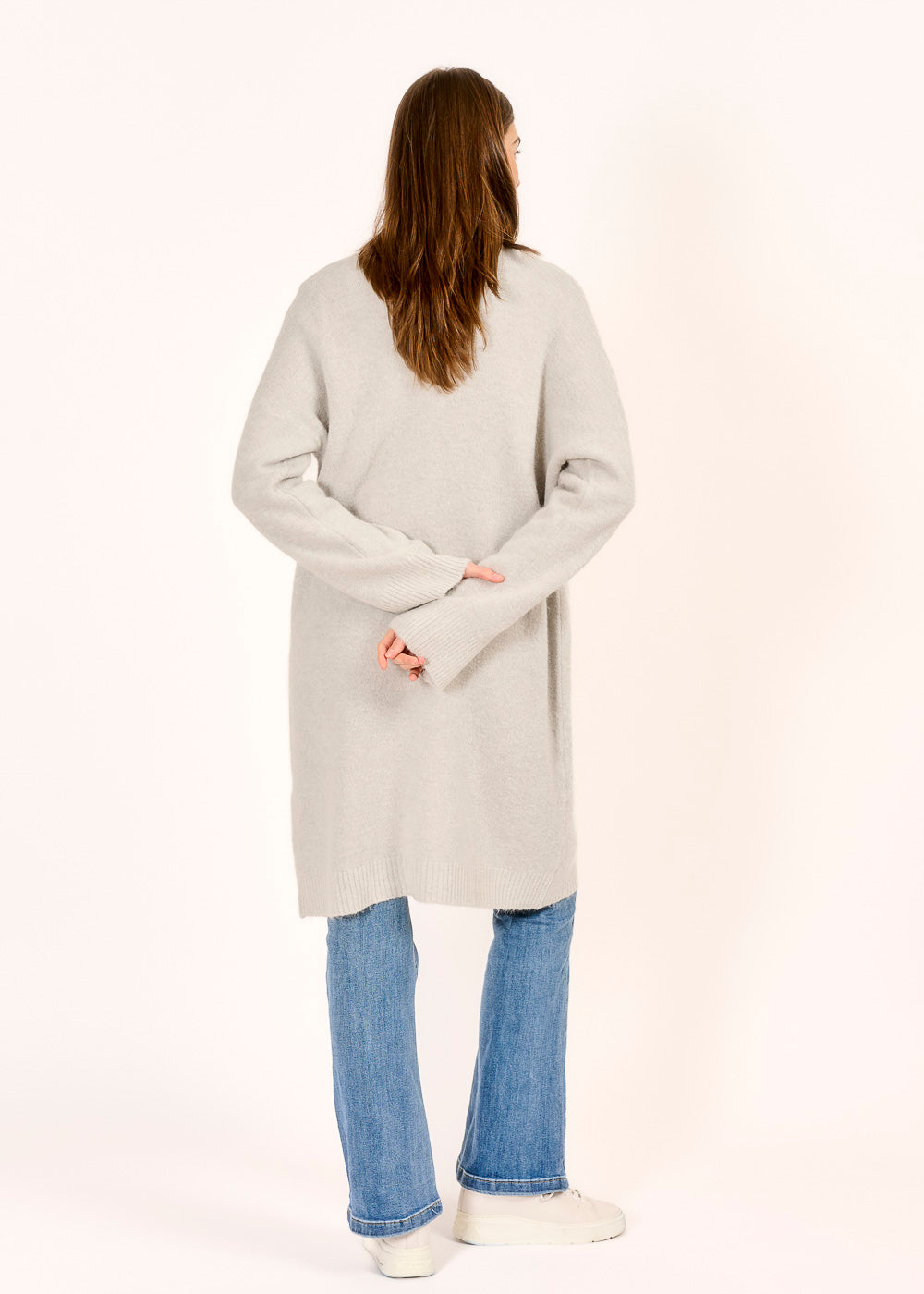 Dieser edle Longcardigan in der Farbe Grigio begeistert mit seiner kuschelig weichen Qualität dank des Anteils an hochwertigem Babyalpaka. Die praktische Länge – weder zu lang noch zu kurz – macht ihn zum vielseitigen Begleiter für elegante und gemütliche Looks.