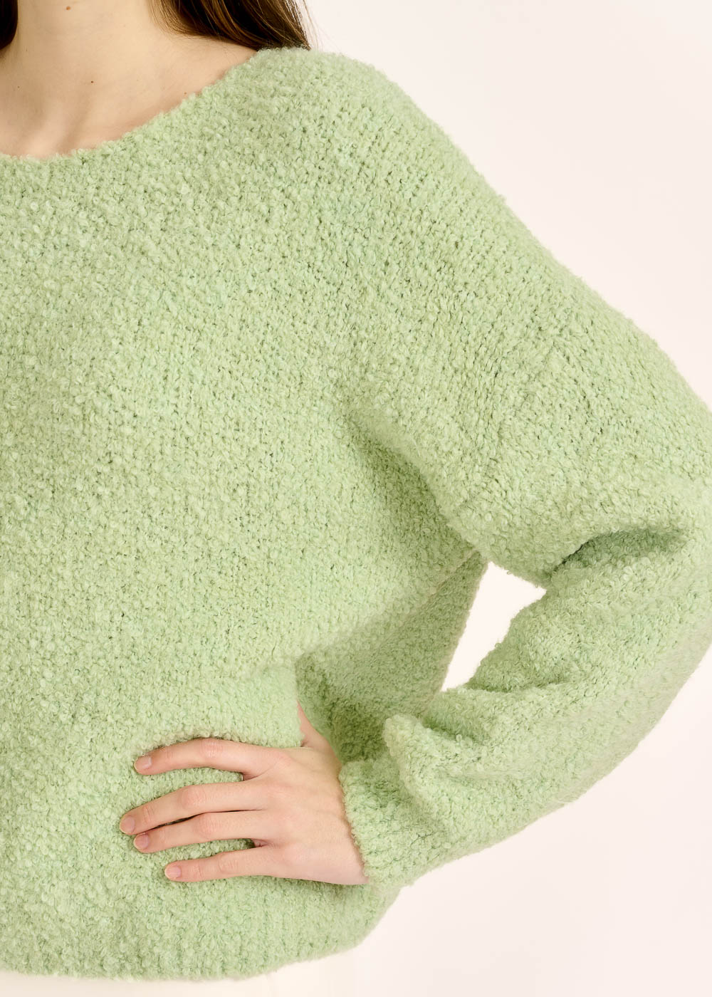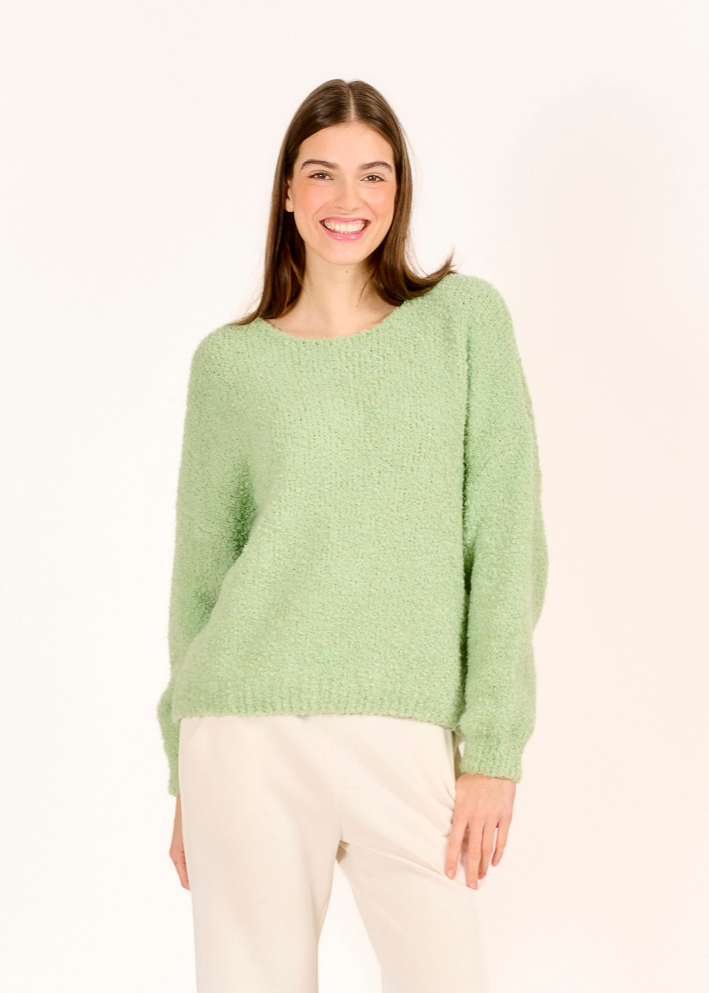 Dieser Bouclépullover in der zarten Farbe Salvia begeistert mit seiner kuscheligen Textur und lässigen Eleganz. Das weiche Material sorgt für ein angenehmes Tragegefühl und macht ihn zum perfekten Wohlfühl-Piece. Für den perfekten Look gibt es den passenden Schal dazu – ideal für stilvolle, harmonische Outfits.