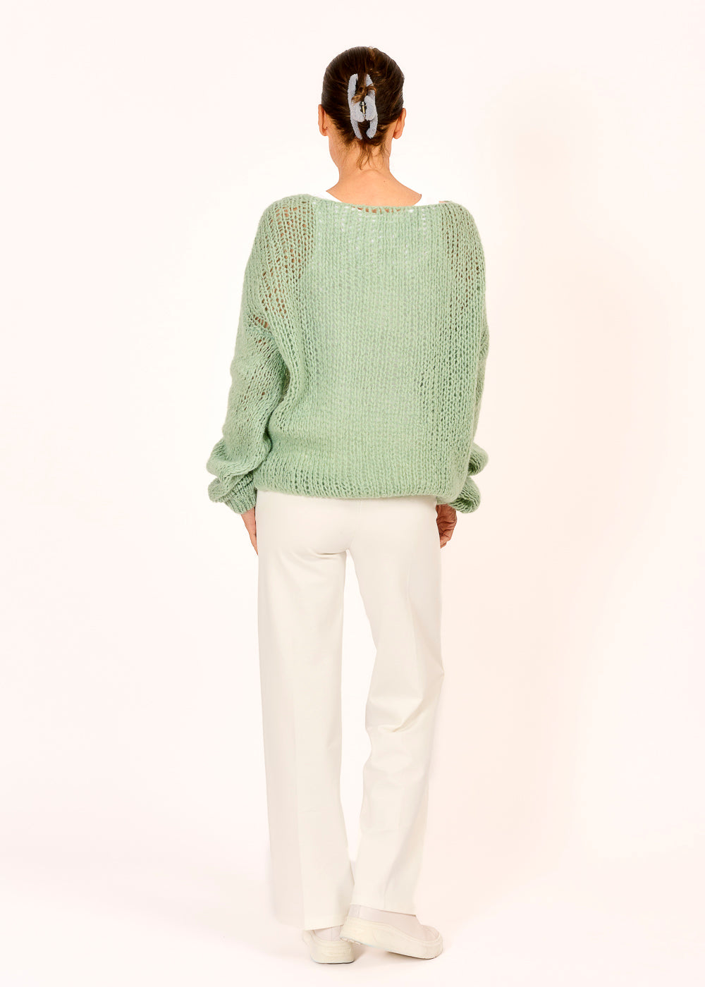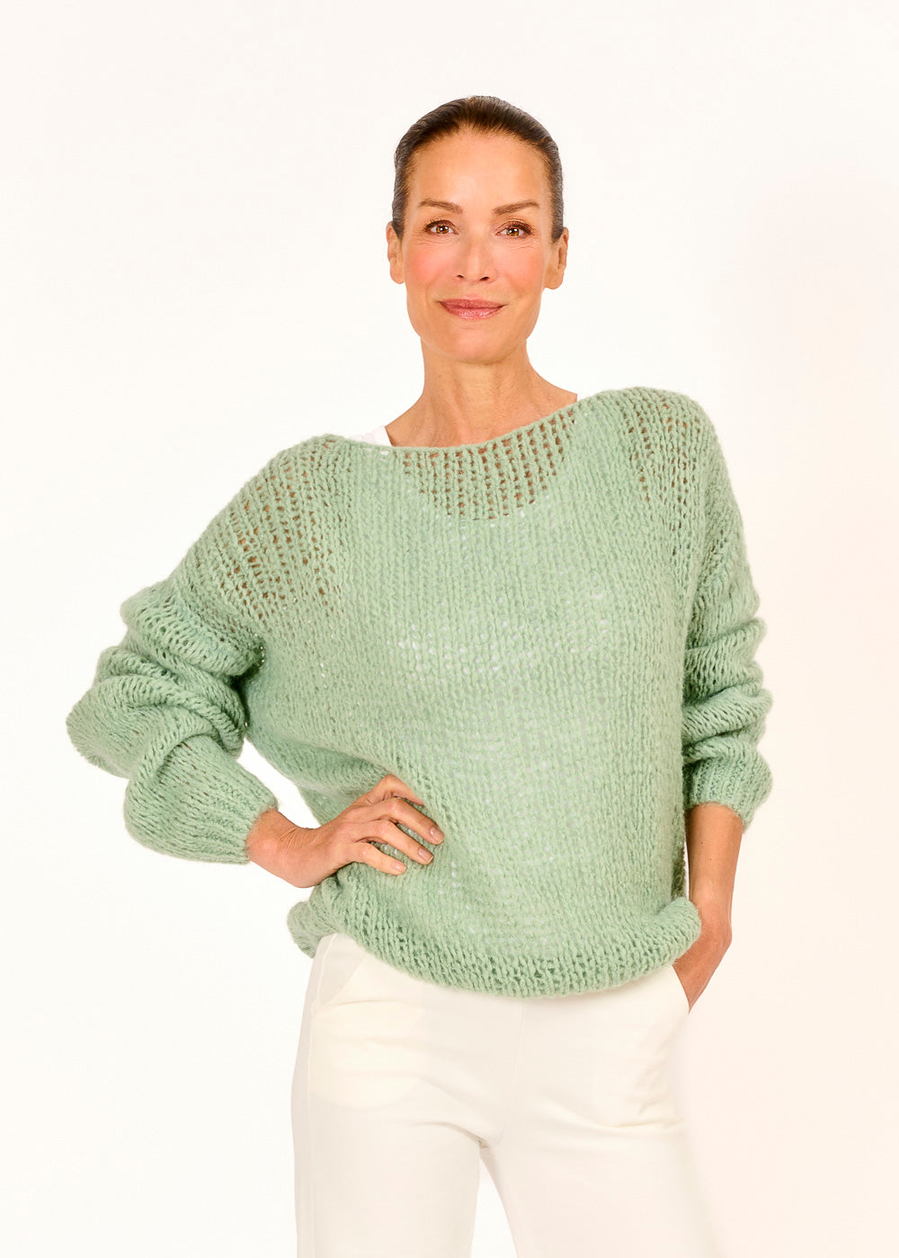 Dieser Grobstrickpullover in der frischen Farbe Menta bringt einen Hauch von Frühlingsfrische in deine Looks. Die lockere Strickstruktur sorgt für eine lässige Optik und ein angenehmes Tragegefühl. Perfekt für kühle Tage – stylisch, cozy und wunderbar vielseitig kombinierbar.