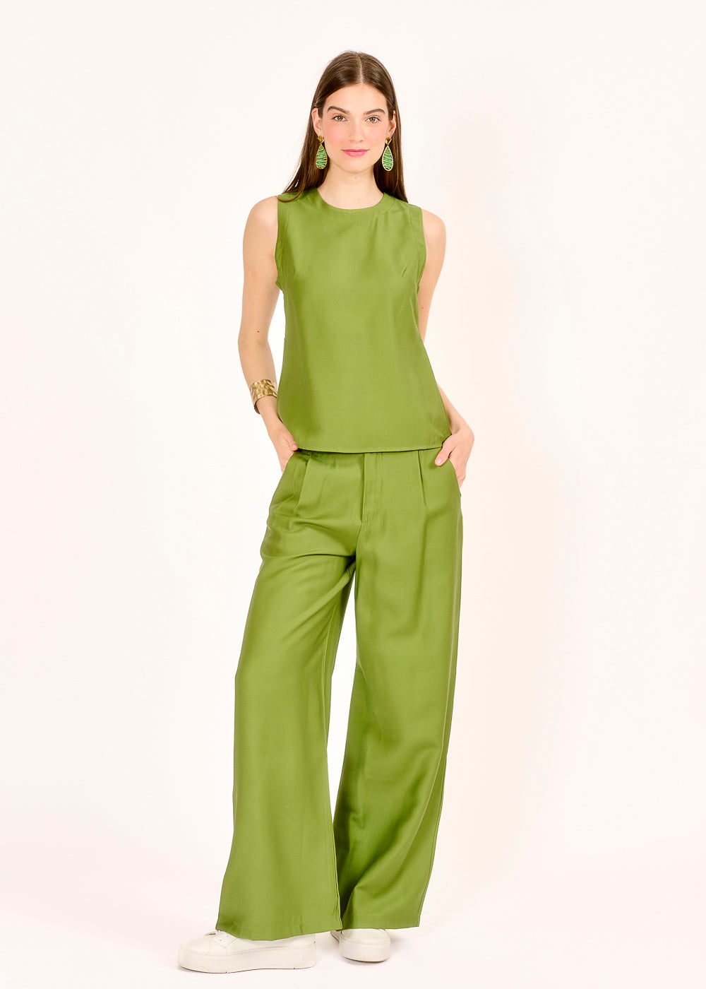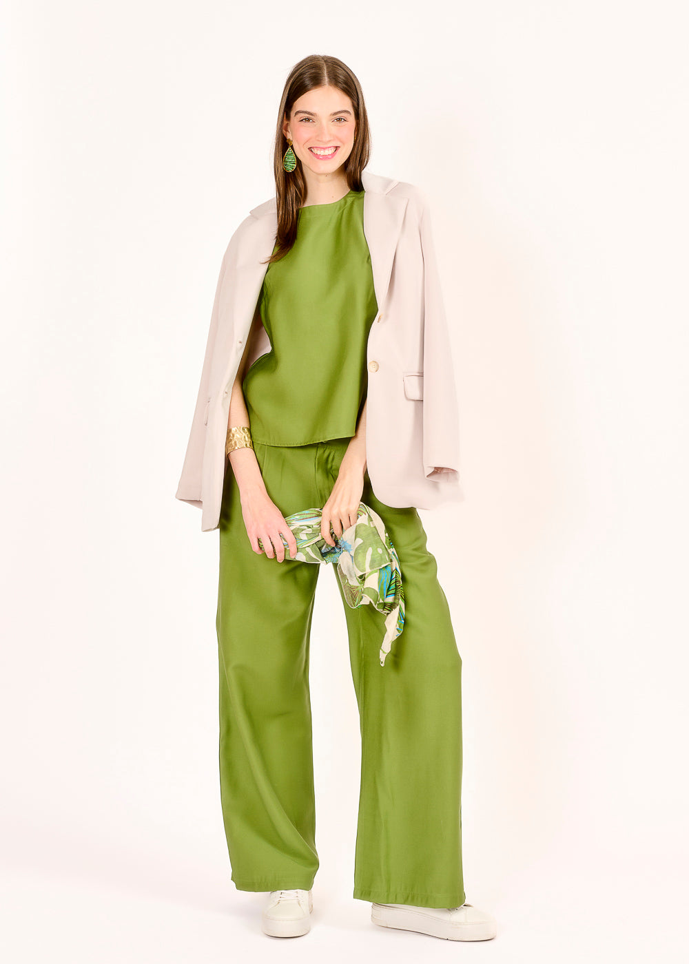 Diese lässige Hose in einem trendigen Verde mit weitem Bein sorgt für ein bequemes Tragegefühl und einen stylischen Look, der sich perfekt für jede Gelegenheit eignet. Kombinieren Sie sie mit dem passenden Top oder Hemd für ein harmonisches Outfit, das Ihre individuelle Note unterstreicht!