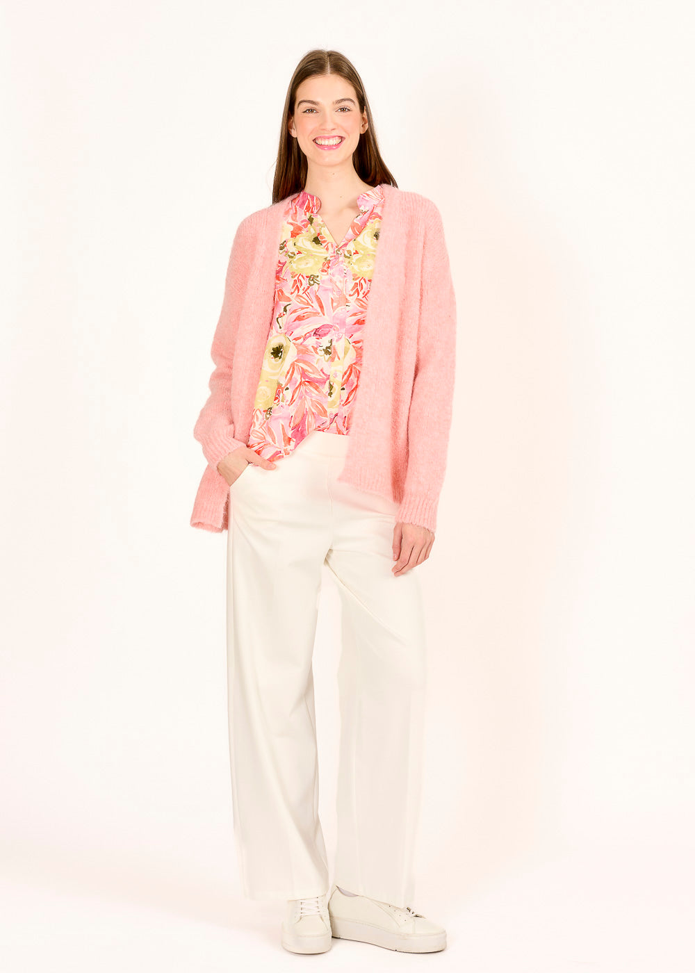 Dieser pinke Cardigan ist eine frische und farbenfrohe Alternative zum klassischen Pullover. Der offene Schnitt und das weiche Material sorgen für angenehmen Tragekomfort und vielseitige Stylingmöglichkeiten. Ob lässig übergeworfen oder elegant kombiniert – er verleiht jedem Outfit einen lebendigen Akzent.