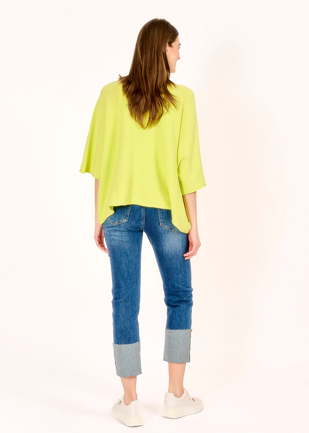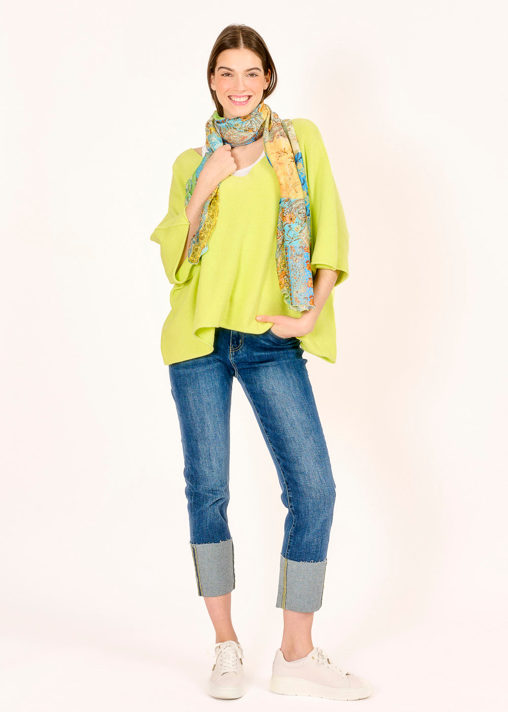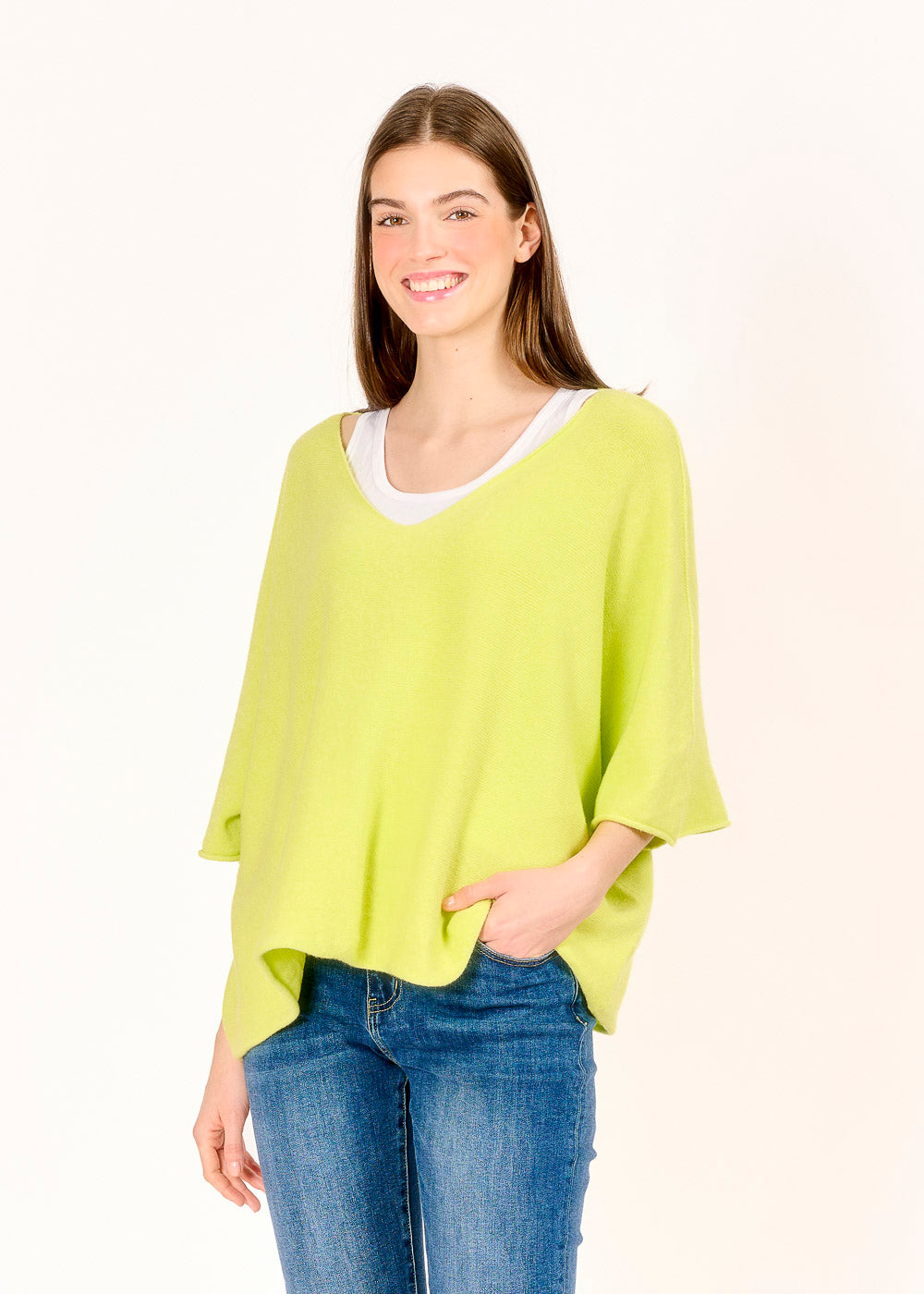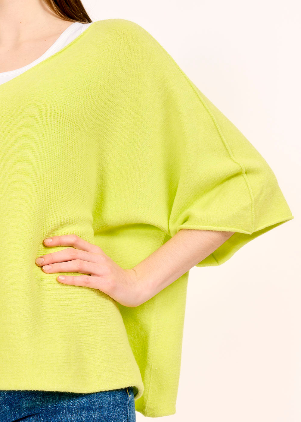 Unser Kimonopullover ist ein lebendiges Statement-Stück für deinen Kleiderschrank. Mit seinem charmanten Kimono-Schnitt und der strahlenden Lime-Farbe verleiht er deinem Look eine einzigartige Note. Egal, ob du ihn zu Jeans für einen lässigen Look oder zu einer schicken Hose für einen besonderen Anlass kombinierst, dieser Pullover ist immer eine gute Wahl.
