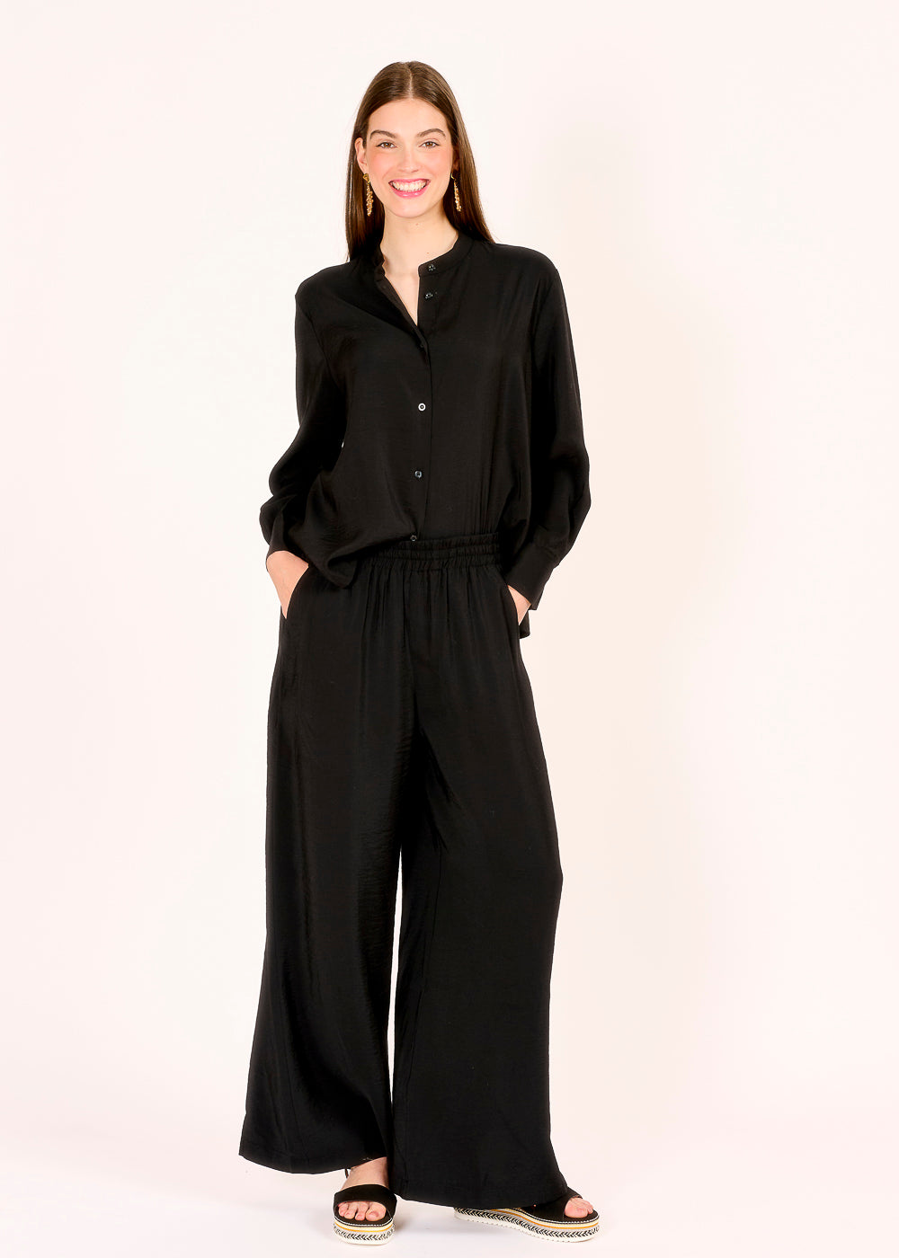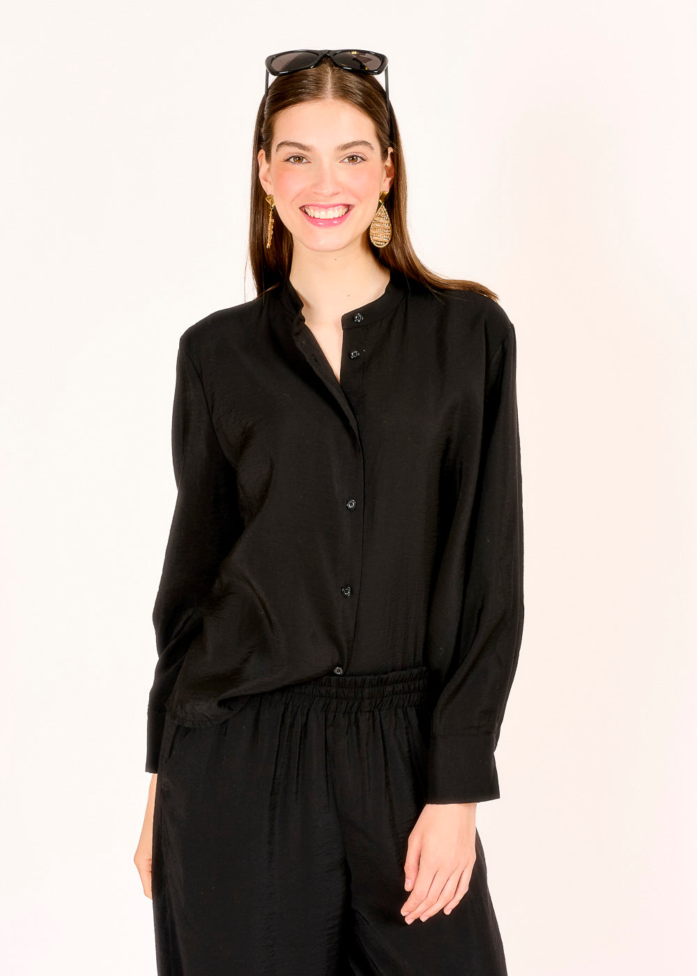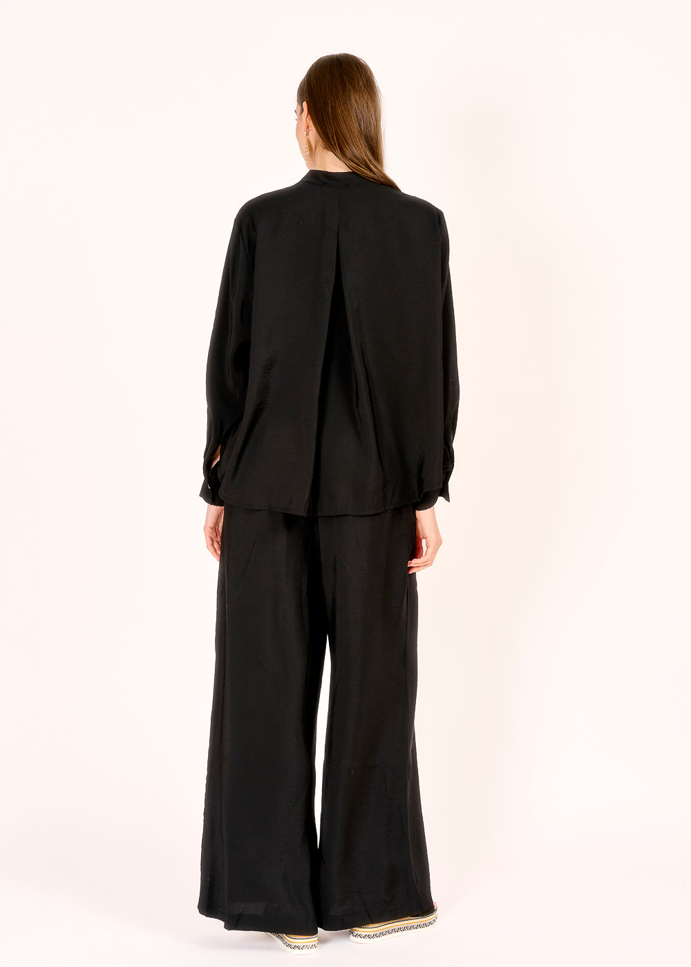 Dieses Blusenhemd in klassischem Schwarz überzeugt durch seine elegante Schlichtheit mit einem raffinierten Detail. Die besondere Rückenfalte verläuft bis in den Halsausschnitt und verleiht der Bluse eine stilvolle, fließende Silhouette mit schönem Volumen. Ein vielseitiges It-Piece für moderne Looks – ob im Büro oder in der Freizeit.