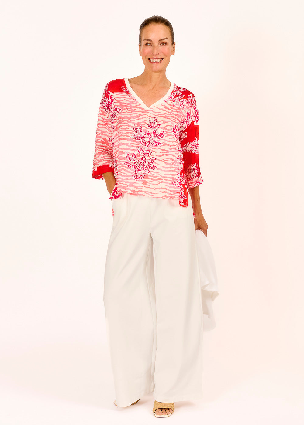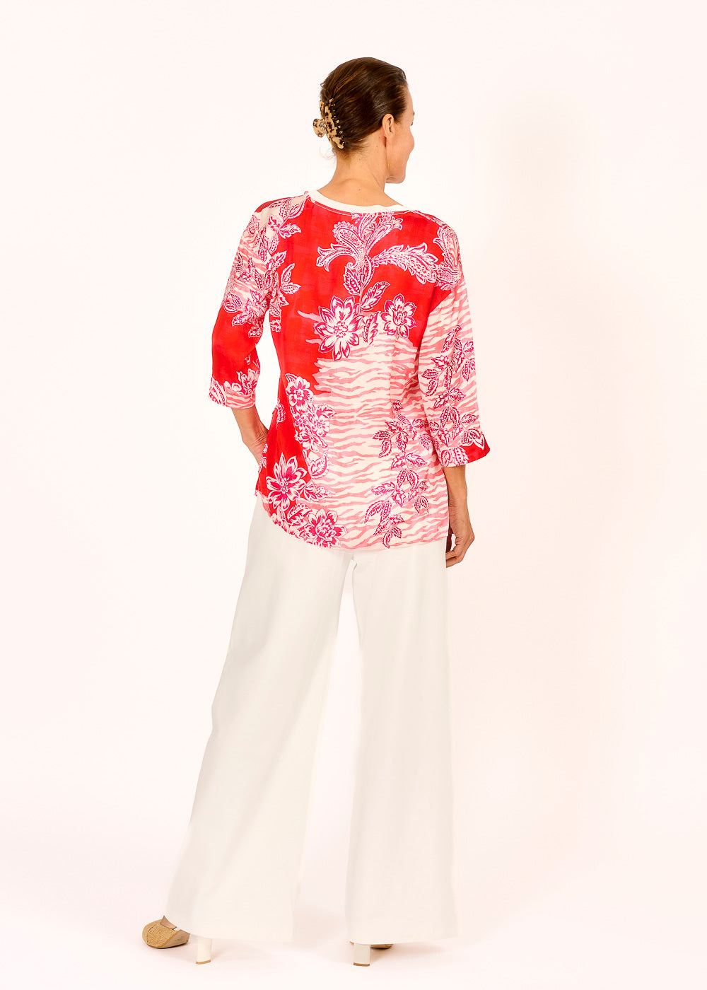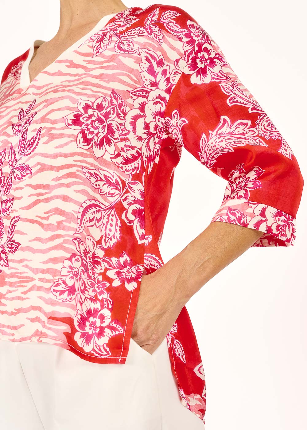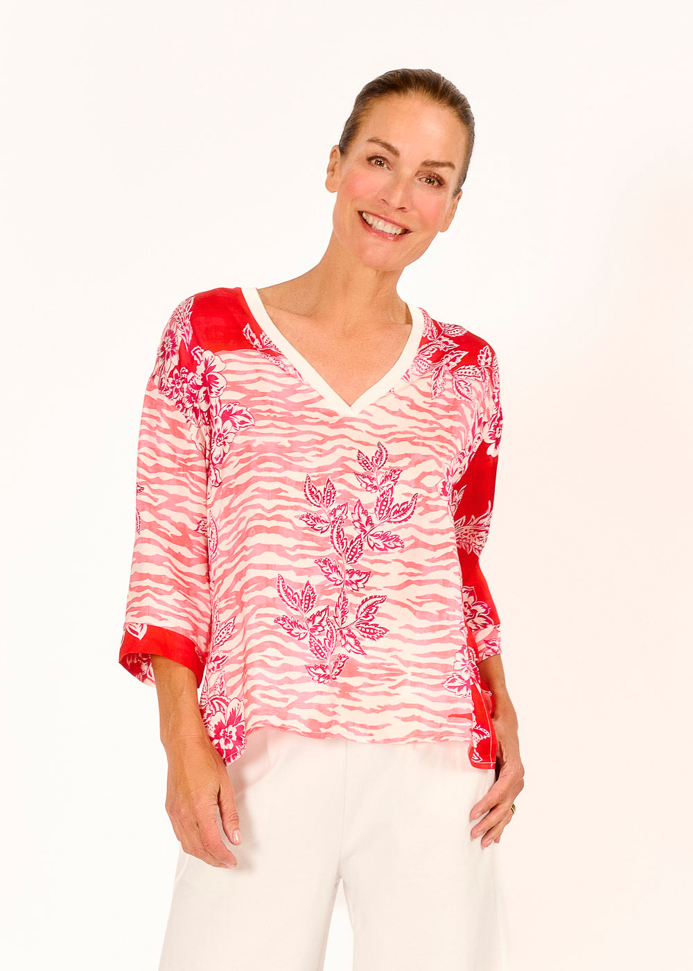 Dieses bedruckte Tunikashirt in der Farbe Rosso überzeugt mit einem modischen V-Ausschnitt und einem auffälligen, trendigen Muster. Die fließende Passform sorgt für ein angenehmes Tragegefühl und einen stilvollen Auftritt. Ein echtes Statement-Piece für alle, die Mode mit Mut und Persönlichkeit lieben.