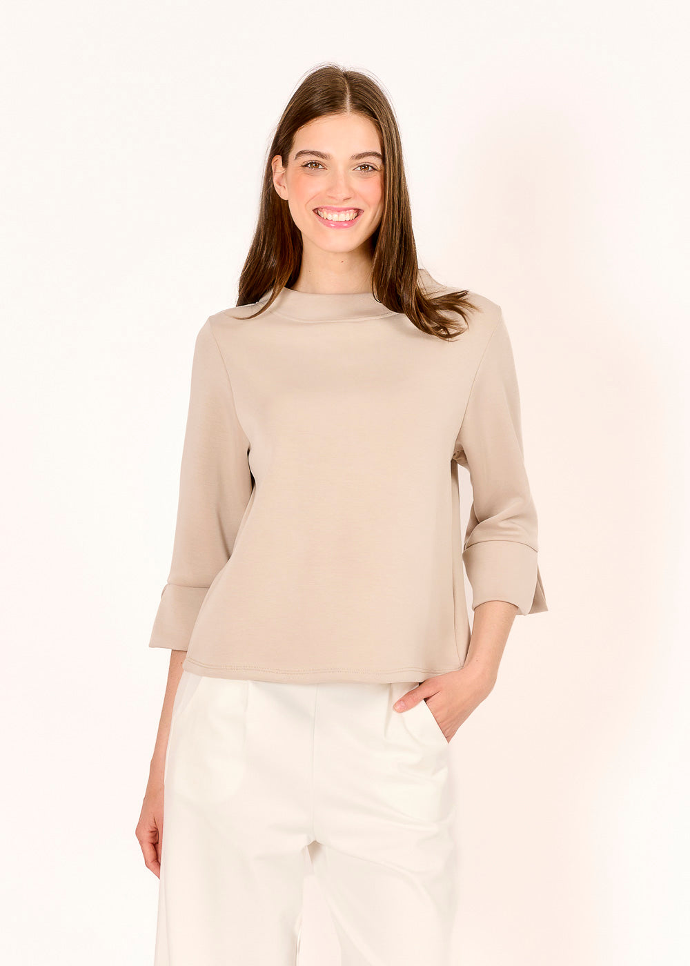 Dieses Kastenshirt in Beige besticht durch seinen leichten A-Shape-Schnitt und den eleganten Schlitz auf der Rückseite. Der weiche Griff des Materials sorgt für ein angenehmes Tragegefühl und macht es zu einem vielseitigen Basic für jeden Look.