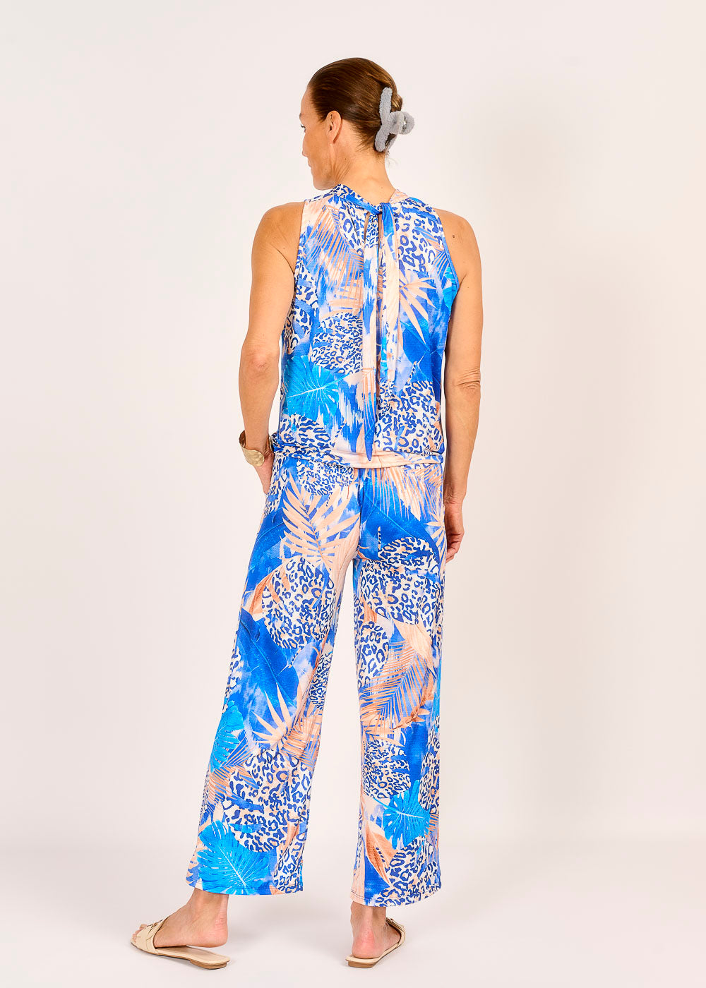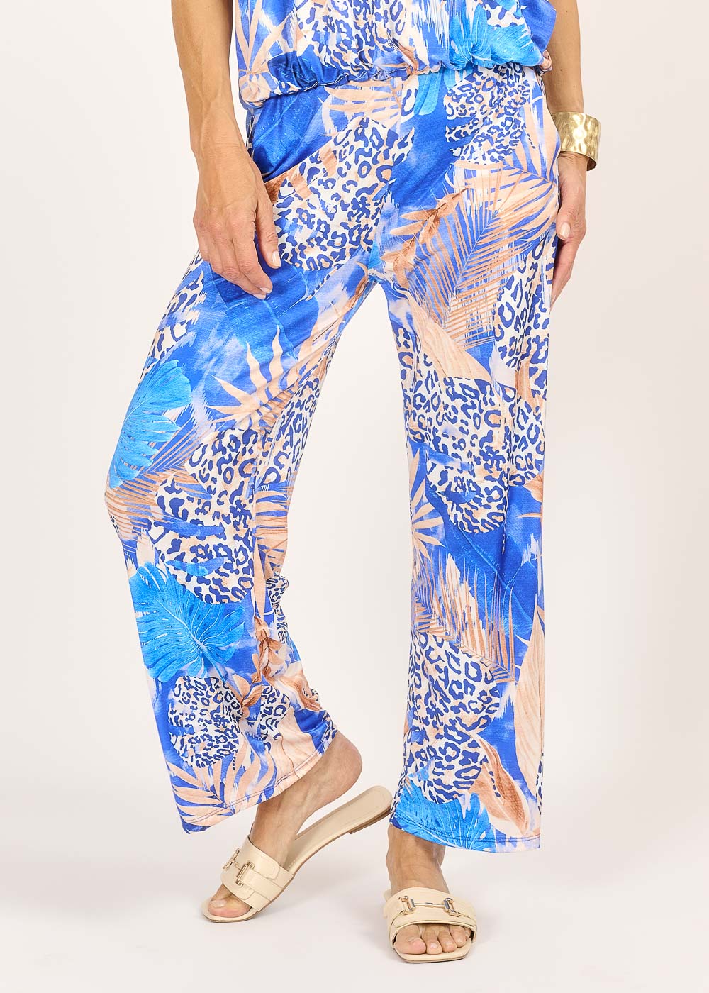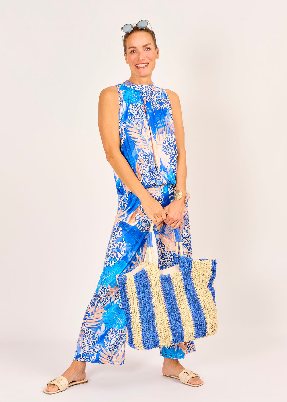 Diese Druckhose im blauen Animalmuster ist ein echter Eyecatcher und bringt frischen Schwung in deine Sommergarderobe. Der fließende Stoff und der bequeme Schnitt sorgen für ein angenehmes Tragegefühl – perfekt für lässige oder elegante Looks. Für ein stimmiges Outfit gibt es das passende Neckholdertop im gleichen Muster.