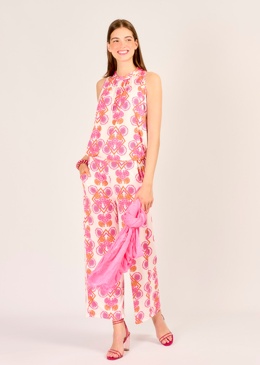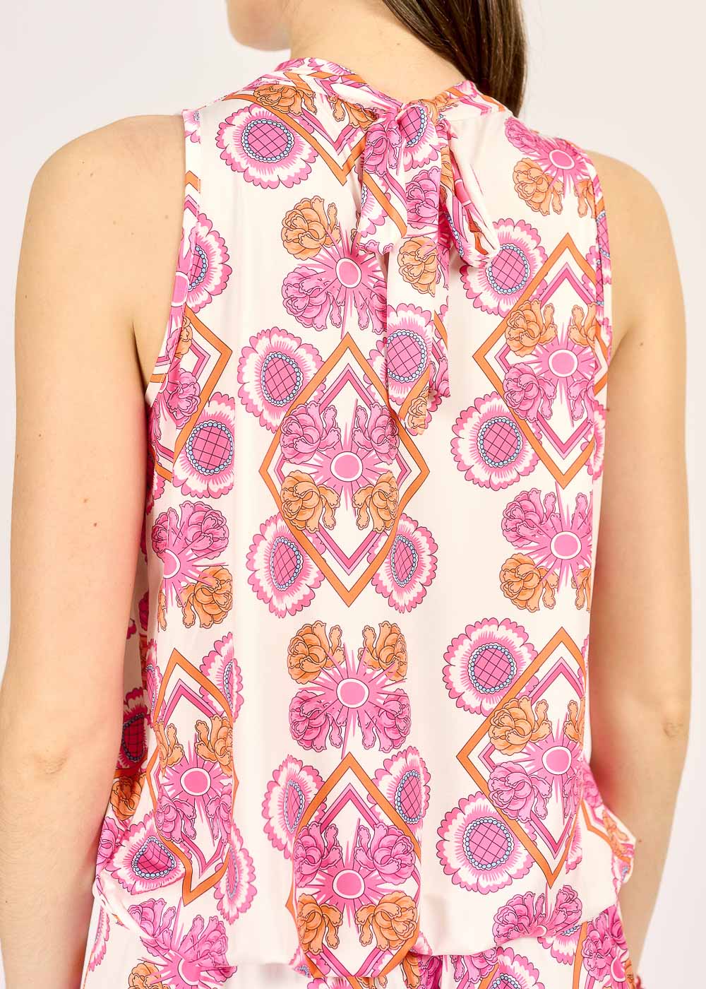 Dieses auffällige Top in Fuchsia mit einem lebendigen Muster ist ein echter Blickfang für Ihre Sommergarderobe. Die feine Qualität und der fließende Fall sorgen für ein angenehmes Tragegefühl und eine schmeichelhafte Silhouette. Kombinieren Sie es für einen harmonischen Gesamtlook mit der passenden Hose und kreieren Sie so ein stilvolles Ensemble.