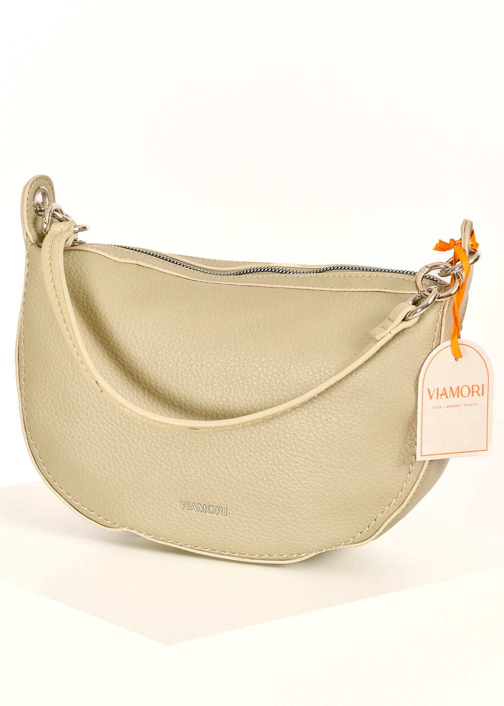 Diese Tasche in der Farbe Menta beeindruckt mit ihrer trendigen Halbmondform und verleiht jedem Outfit einen modernen Akzent. Ihr einzigartiges Design macht sie zu einem stilvollen Highlight für vielseitige Looks.