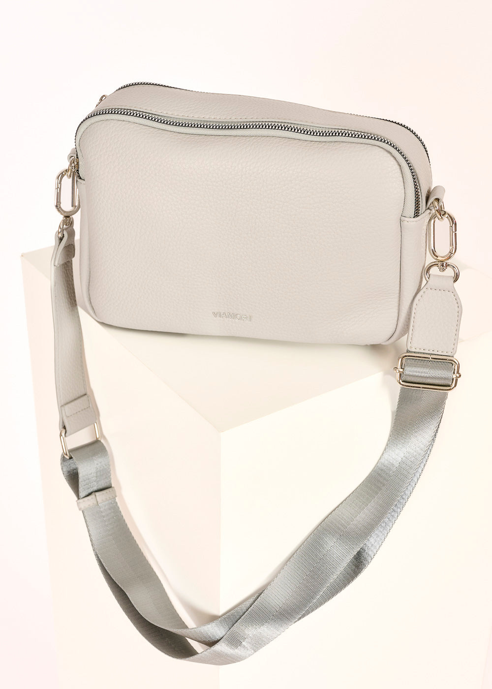 Die Crossbody Camera in der Farbe Grigio besticht durch ihre edle, zurückhaltende Ausstrahlung. Mit ihrem zeitlosen Design und der eleganten Farbgebung ist sie der perfekte Begleiter für jede Gelegenheit.