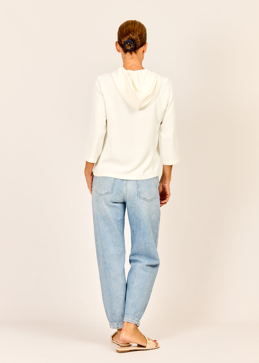 Dieses edle Kapuzenshirt in strahlendem Bianco-Ottico definiert lässige Eleganz neu und ist die perfekte Wahl für stilbewusste Looks. Gefertigt aus einem hochwertigen Gewebe, bietet es unvergleichlichen Komfort und eine schmeichelhafte Passform, die sich wunderbar anfühlt. Ob für entspannte Stunden zu Hause oder einen schicken Stadtbummel, dieses Shirt vereint Komfort und anspruchsvollen Stil auf einzigartige Weise.