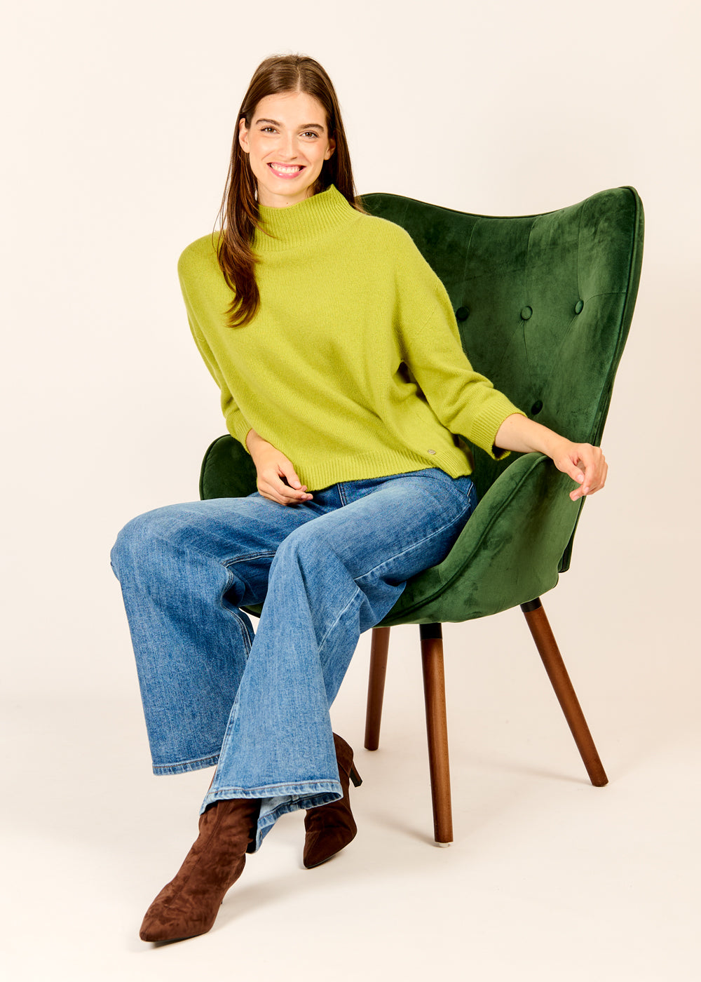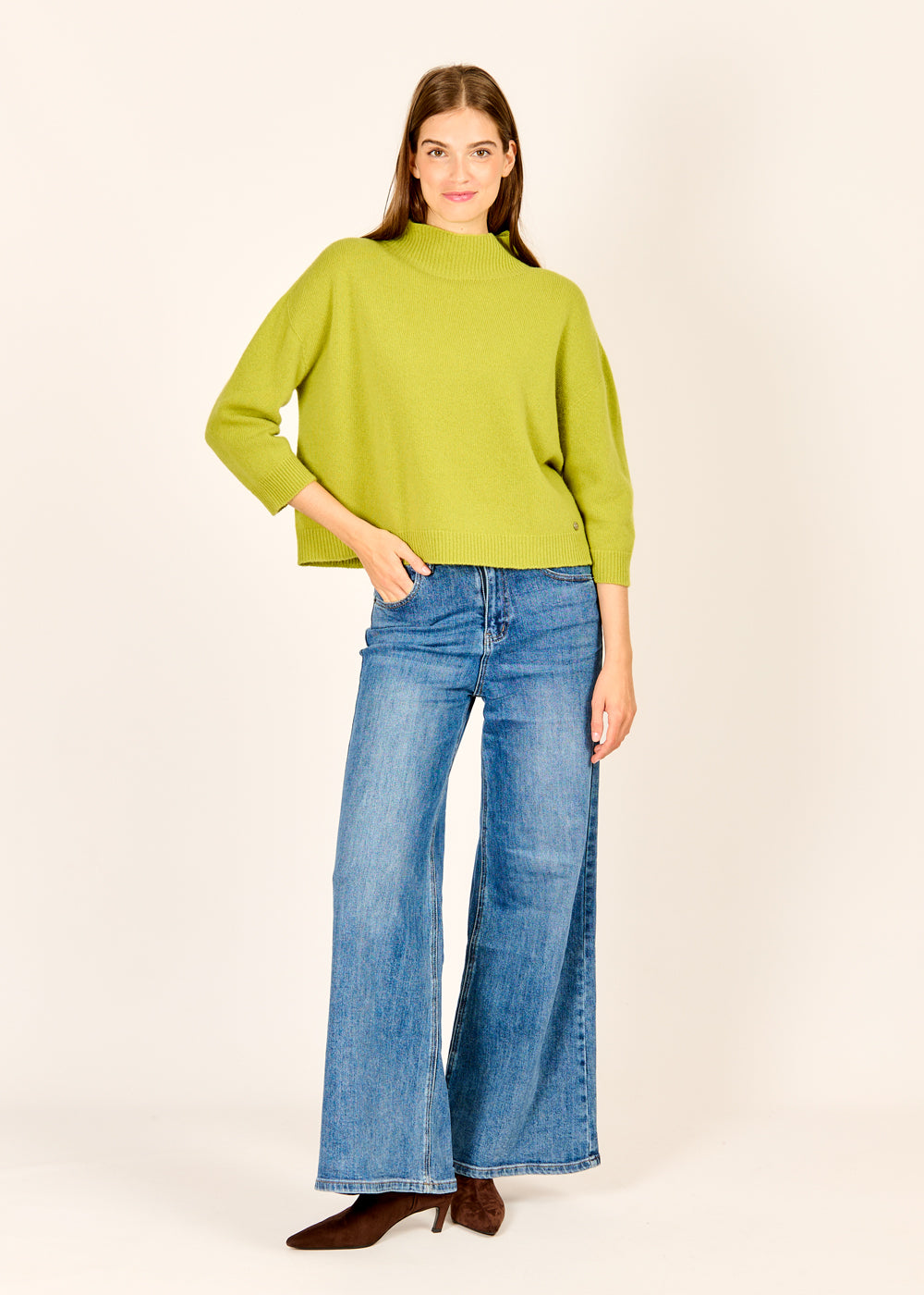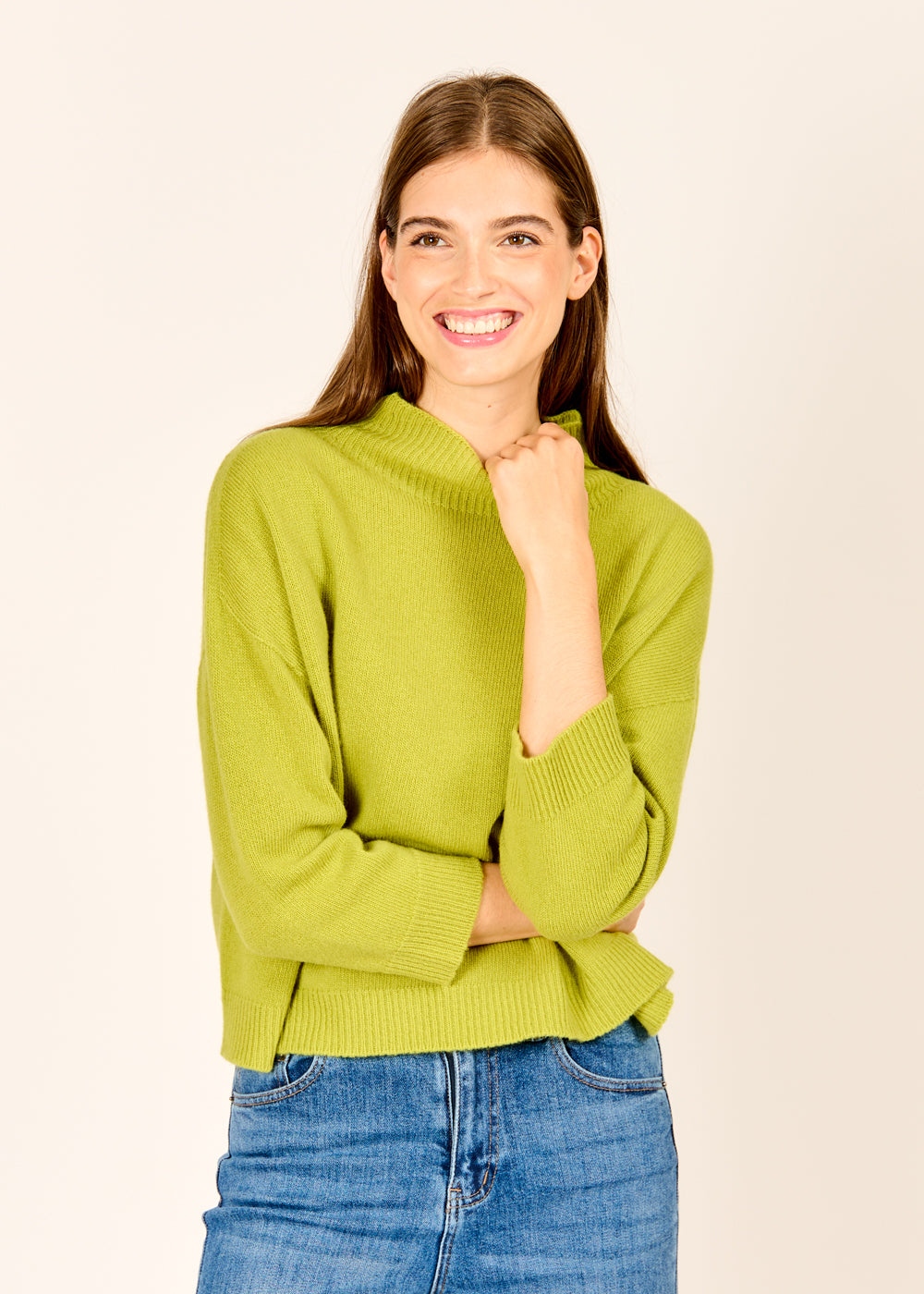 Erlebe den perfekten Mix aus Stil und Komfort mit unserem 3/4-Arm Pullover in frischem Lime. Hergestellt aus superweicher Wolle, fühlt er sich unglaublich angenehm auf der Haut an und bietet dir den ganzen Tag über Wohlbefinden. Die leuchtende Farbe und die modische 3/4-Arm-Länge machen diesen Pullover zum idealen Kombinationspartner für einen frischen, modernen Look.
