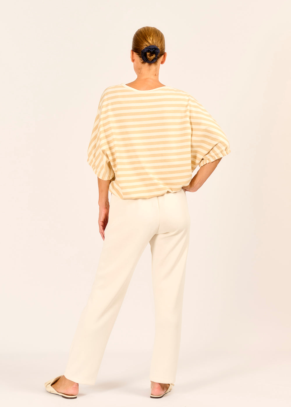 Dieser charmante Ringelsweat vereint maritimes Flair mit entspanntem Komfort und ist ein echter Blickfang für Ihre Garderobe. Die weiten Ärmel mit dem raffinierten Bund verleihen ihm eine moderne Silhouette, die mühelos Stil und Gemütlichkeit verbindet. Perfekt zu lässigen Hosen oder Jeans, ist dieses Oberteil ideal für einen entspannten Tag, an dem Sie trotzdem chic aussehen möchten.