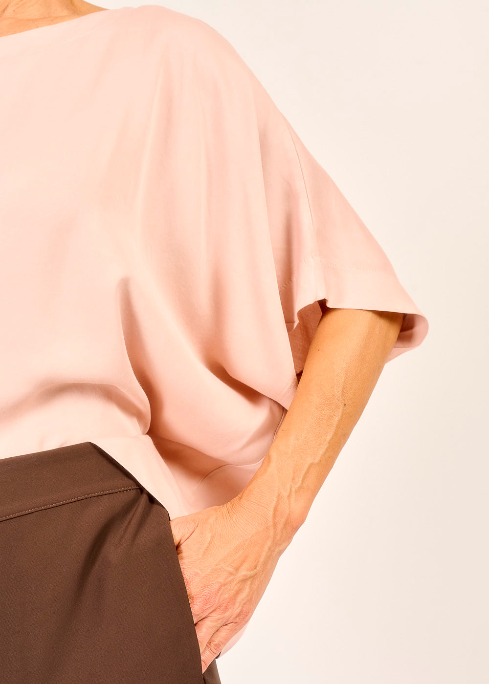 Dieses Blusenshirt in einem zarten Roséton ist die Definition von subtiler Eleganz und wirkt durch seine sanfte Farbgebung besonders edel. Der fließende Schnitt und das feine Material umschmeicheln die Figur und bieten luxuriösen Tragekomfort für jeden Anlass. Ob für ein elegantes Abendoutfit oder einen stilvollen Tageslook, dieses Shirt ist ein vielseitiges Statement-Piece, das Ihre Garderobe bereichert.