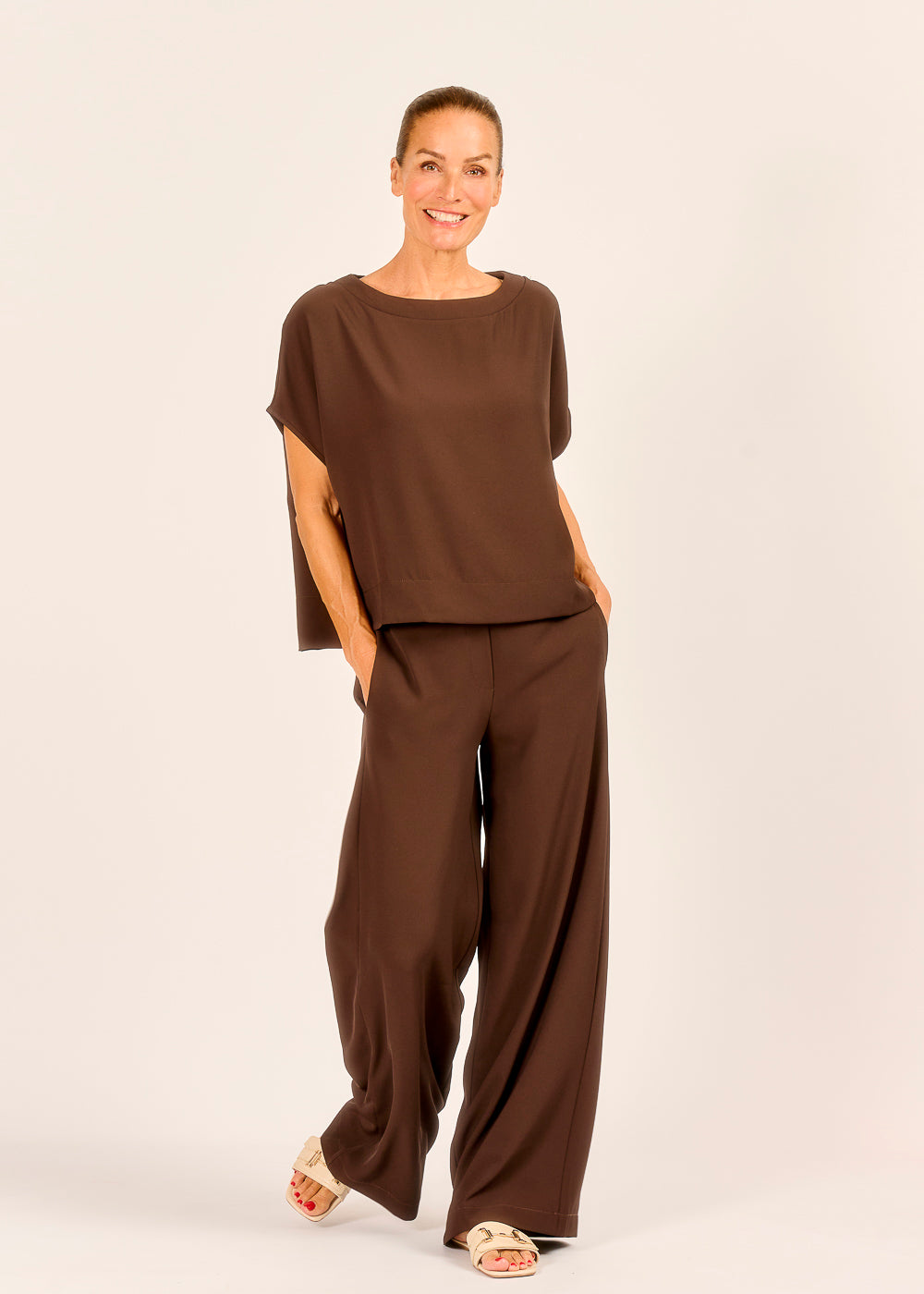 Dieses edle Shirt in der trendigen Farbe Moka ist ein wahrer Hingucker, der schlichte Eleganz perfekt verkörpert. Sein fließender Schnitt und das hochwertige Material sorgen für einen luxuriösen Fall und ein angenehmes Tragegefühl, das den ganzen Tag über begeistert. Ob solo oder als stilvolle Ergänzung zu einem Ensemble, dieses Shirt verleiht jedem Look eine besondere, edle Note.