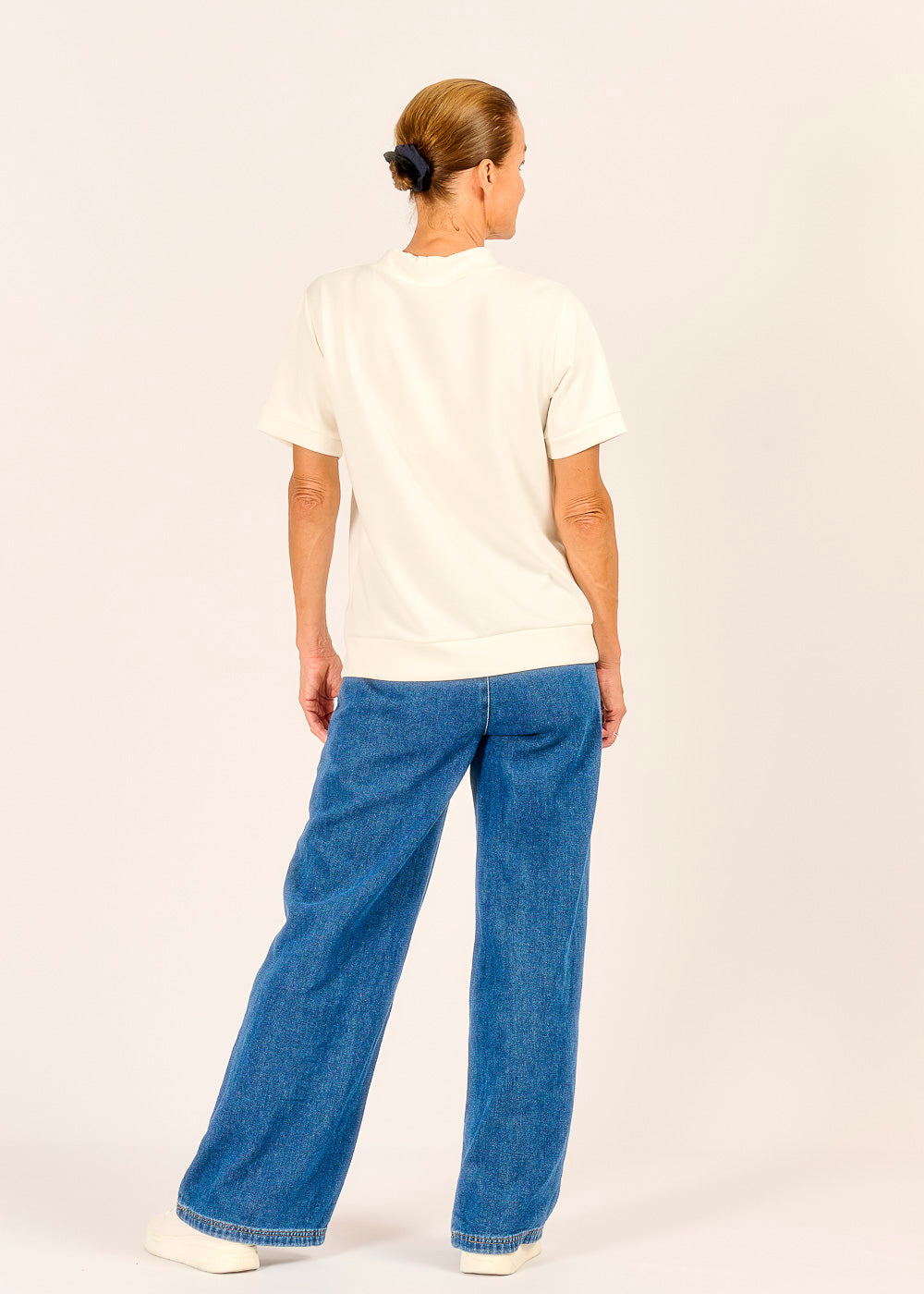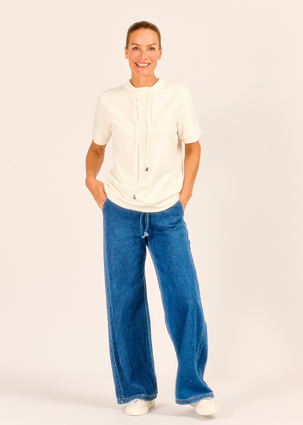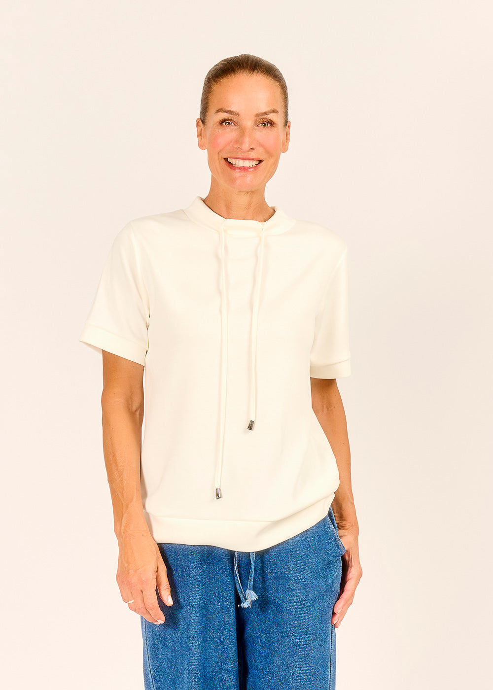 Entdecken Sie unser modernes Shirt, das mit raffinierten Bändern am Ausschnitt einen trendigen Akzent setzt und jedem Look eine individuelle Note verleiht. Gefertigt aus weichem Material, bietet es höchsten Tragekomfort und eine schmeichelhafte Passform, ideal für entspannte Tage oder stilvolle Casual-Outfits. Kombinieren Sie es mit Jeans für einen lässigen Chic oder mit einer schicken Hose für einen mühelosen Übergangslook.