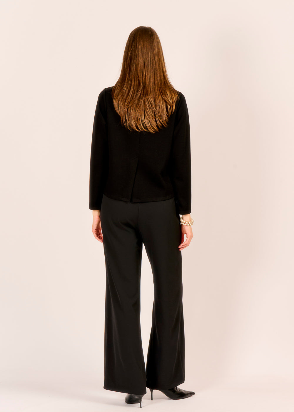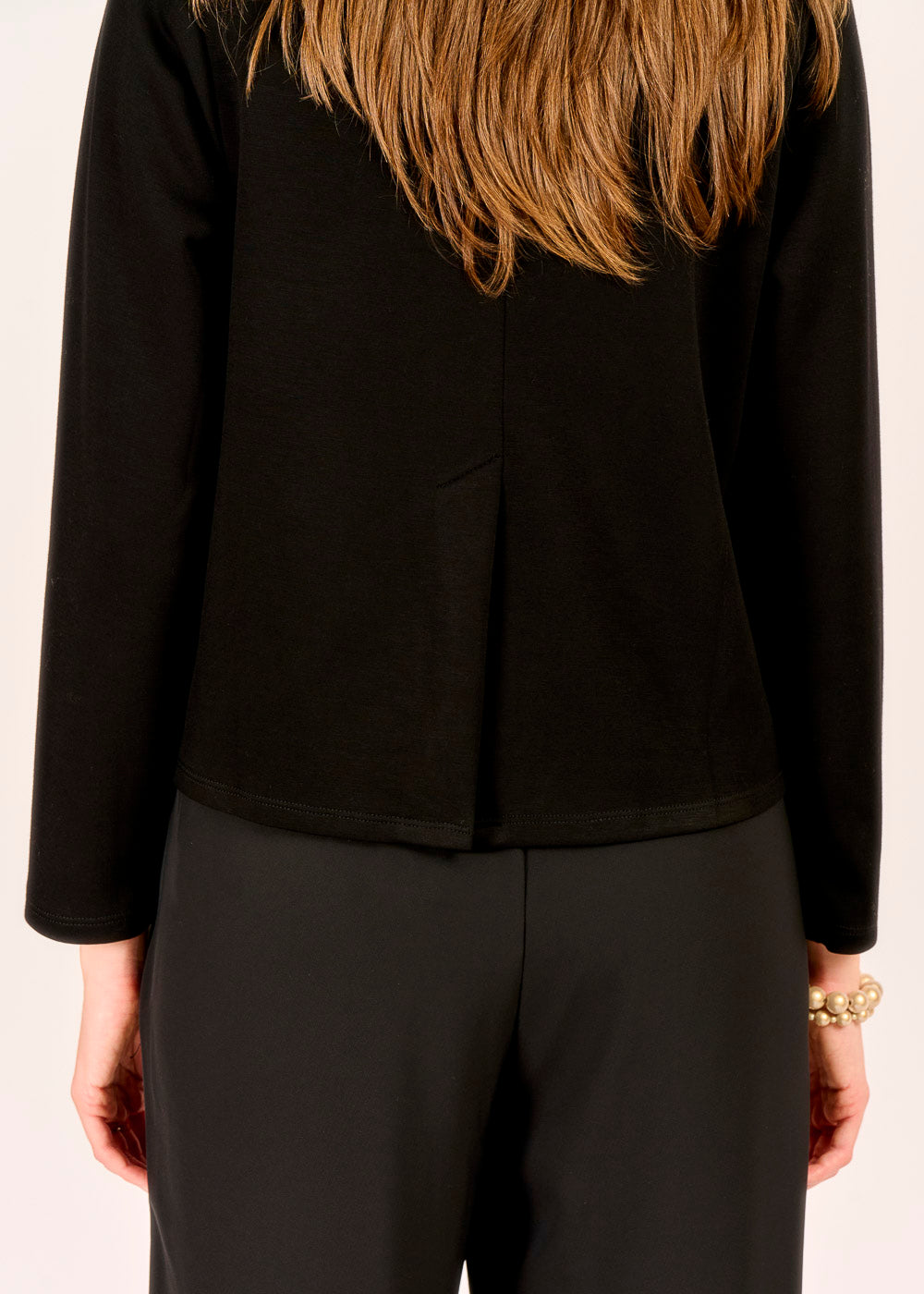 Ein Essential mit dem gewissen Etwas: Dieses schicke Kastenshirt in tiefem Nero überzeugt durch seine moderne, leicht verkürzte Silhouette. Der dezente Schlitz am Rücken sorgt für eine raffinierte Note und verleiht dem ansonsten schlichten Design eine elegante Bewegung. Perfekt, um jedem Look eine stilvolle und zugleich lässige Basis zu geben.
