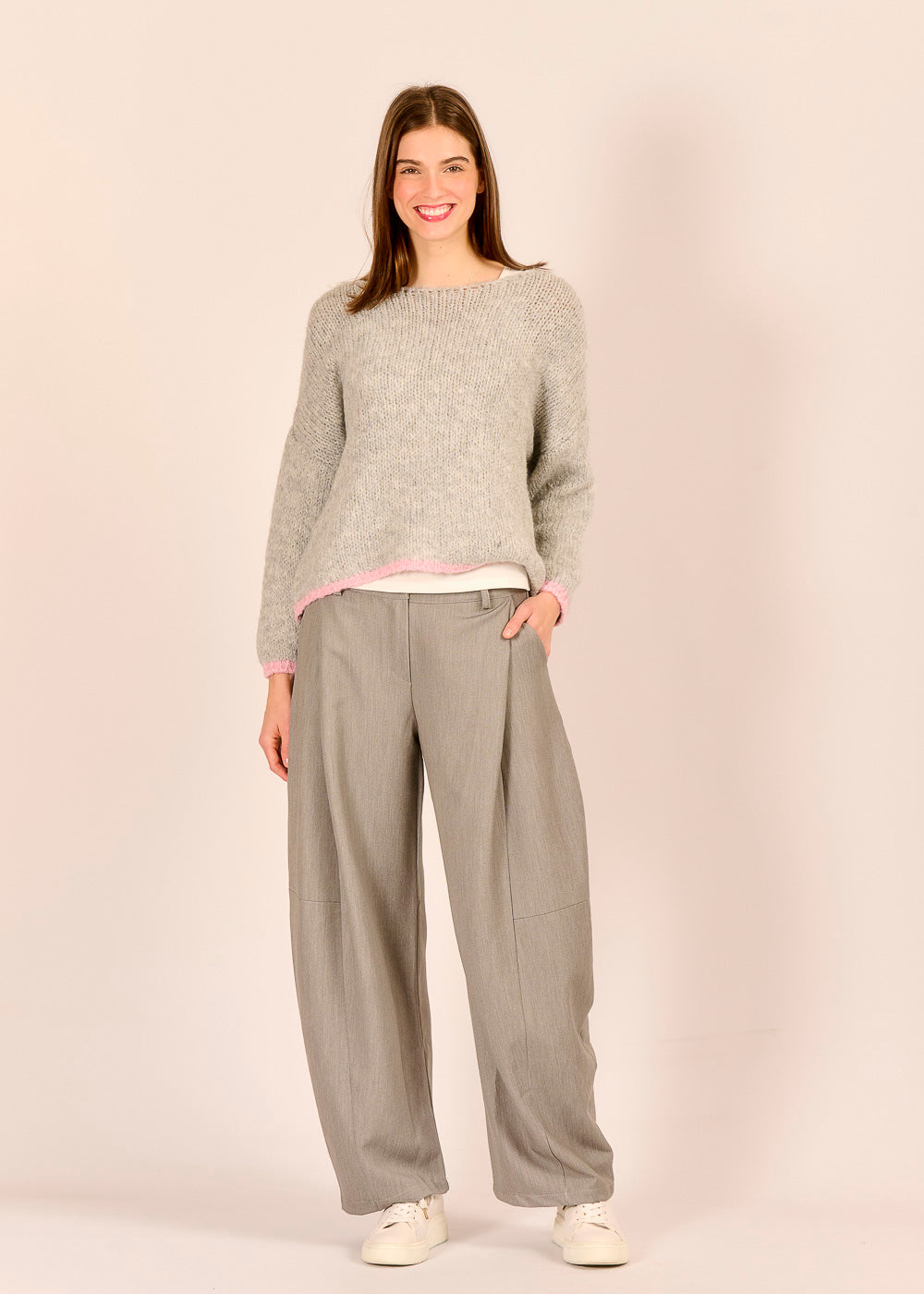 Die graue Ballonhose vereint Komfort und Eleganz auf perfekte Weise. Sie kann sowohl casual als auch edel für die Feiertage gestylt werden. Die moderne Silhouette wirkt mühelos stilsicher und sorgt für ein luftiges Tragegefühl.