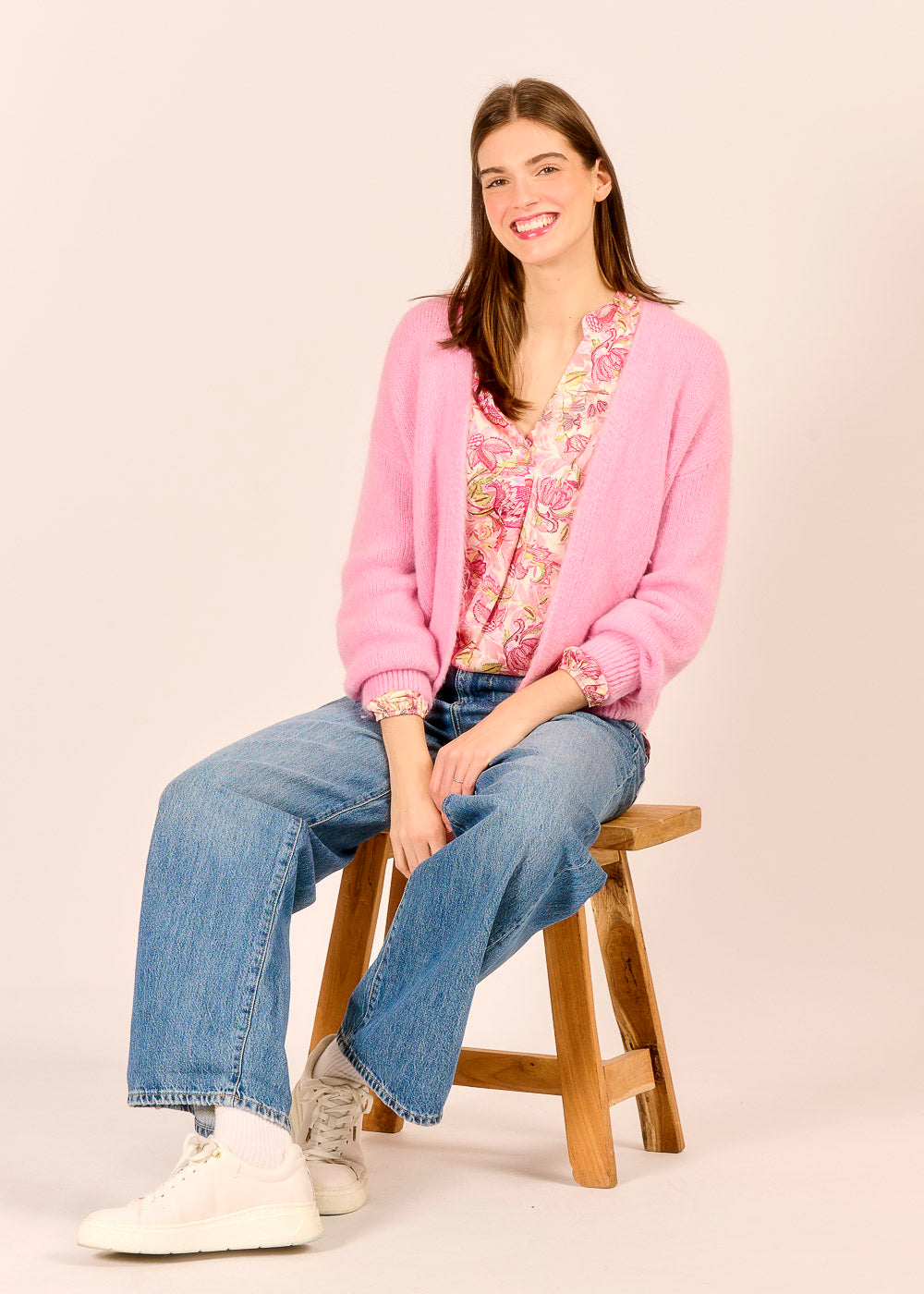 Der Strick-Cardigan ist wie eine sanfte Umarmung an kühlen Tagen. Der zarte, feminine Rosaton bringt Frische in dein Outfit. Er rundet sowohl farbenfrohe als auch schlichte Looks im Handumdrehen perfekt ab.