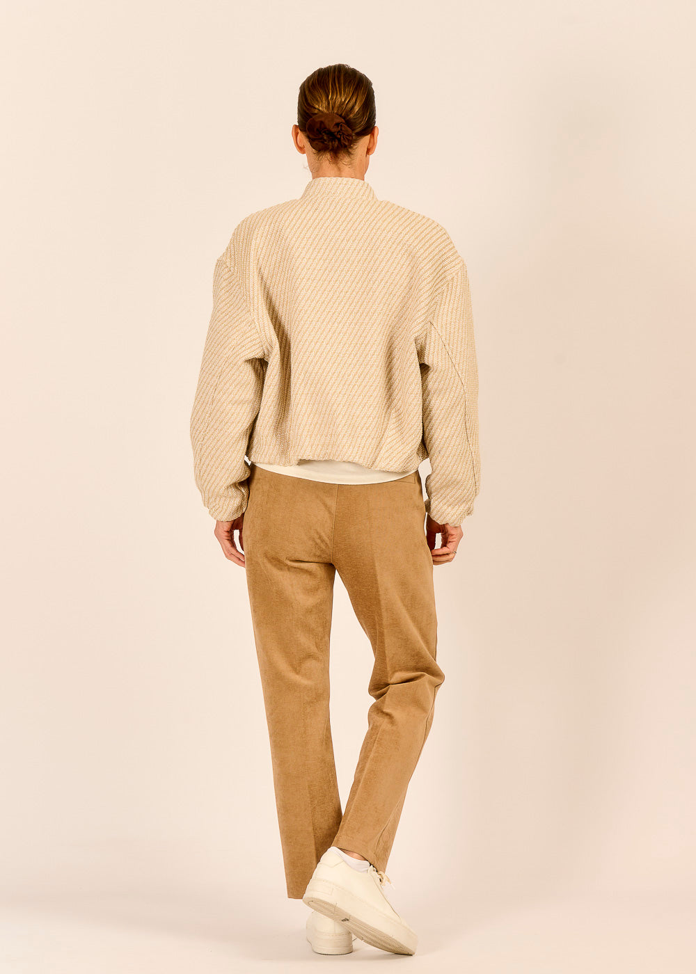 Der modern geschnittene Bomberino ist inspiriert vom urbanen Style Mailands, wobei sportliches Design und zeitloser Stil ganz selbstverständlich miteinander verschmelzen. Der edle Strukturstoff verleiht Charakter, während der warme Beigeton zeitlose Ruhe ausstrahlt. Praktische Druckknöpfe machen den Bomberino zum unkomplizierten Begleiter.