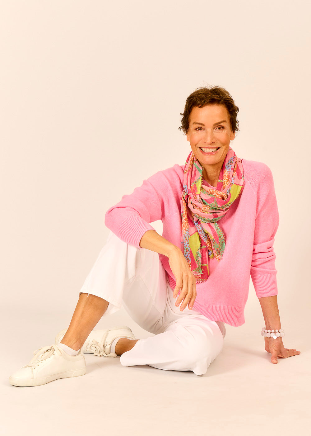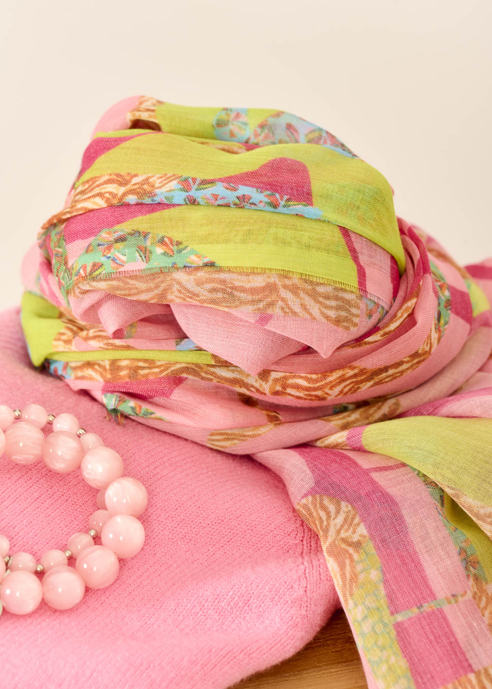 Das lebendige Muster des VIAMORI Tuchs erinnert an sonnige Tage in Italien und bringt die italienische Lebensfreude in deinen Look.